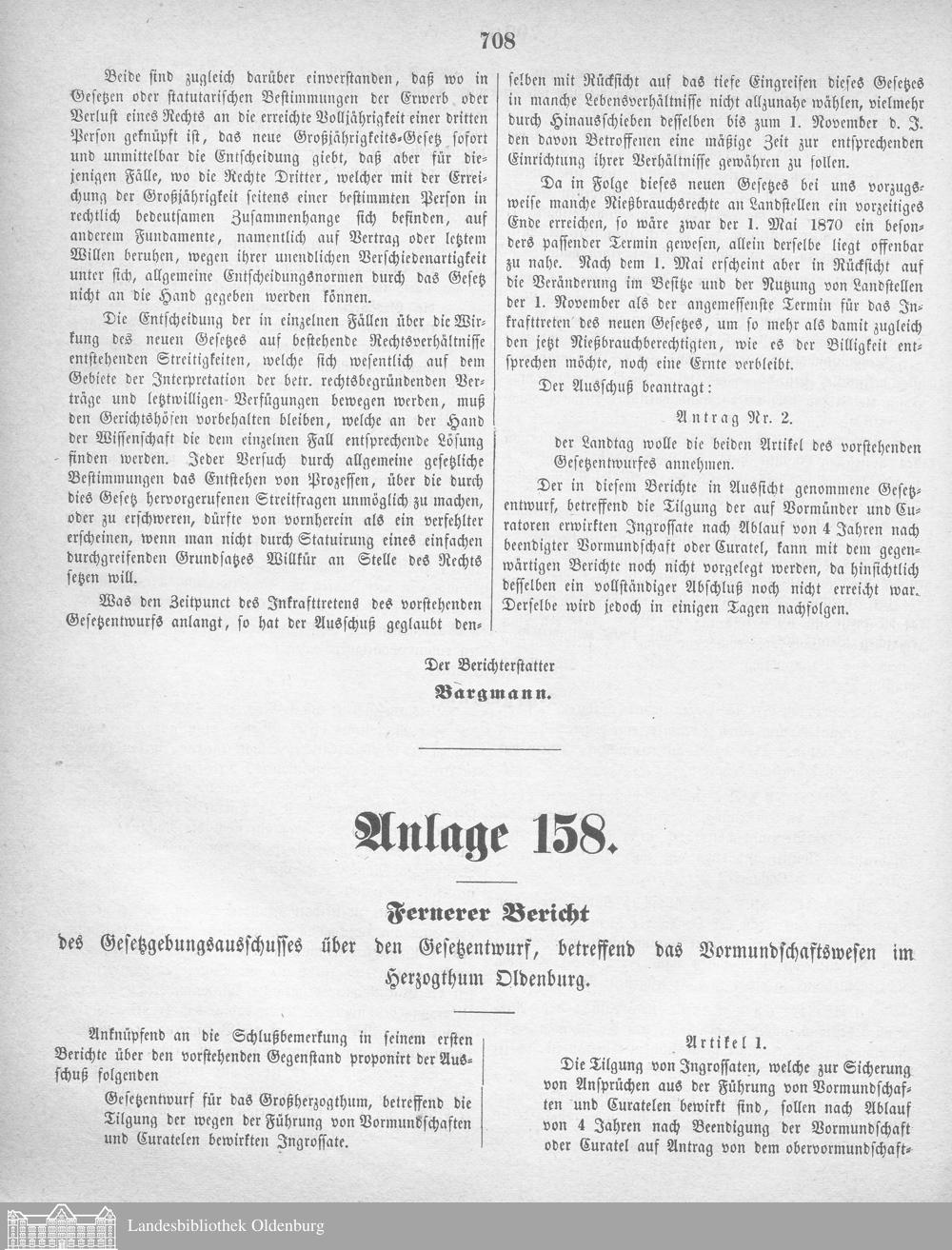 Verhandlungen der ... Versammlung des ... Landtags des Freistaats Oldenburg / Anlagen zu den Niederschriften und Berichten / Anlagen zu den Protokollen und Berichten
