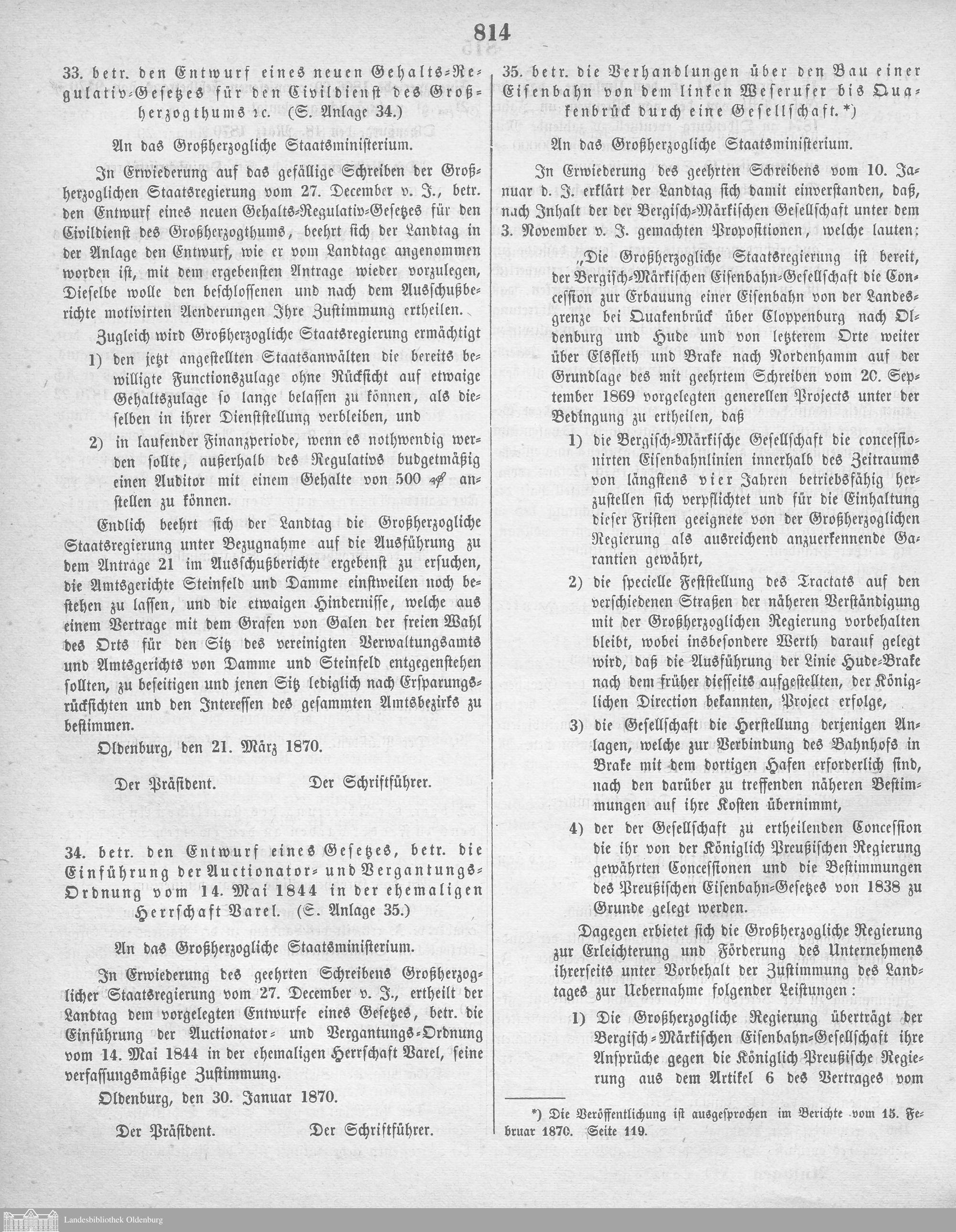 Verhandlungen der ... Versammlung des ... Landtags des Freistaats Oldenburg / Anlagen zu den Niederschriften und Berichten / Anlagen zu den Protokollen und Berichten