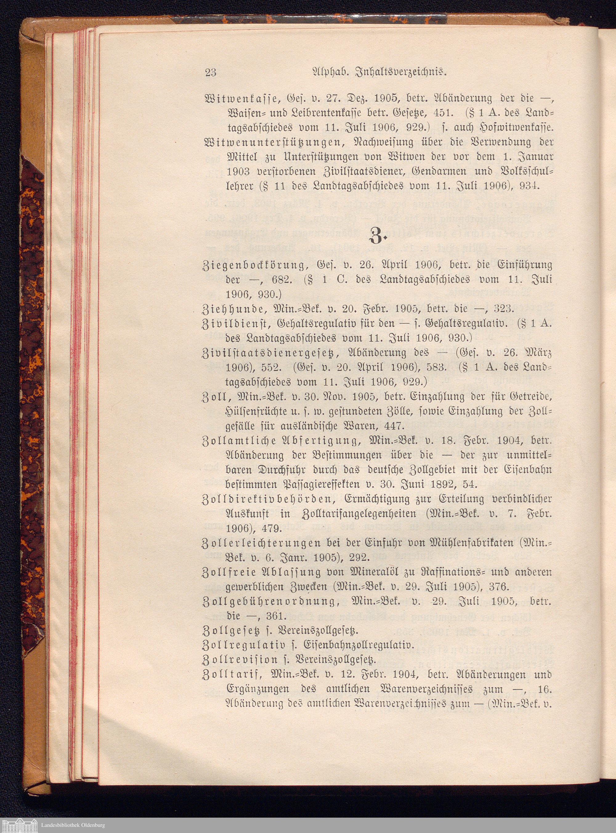 Alphabetisches Inhaltsverzeichnis.