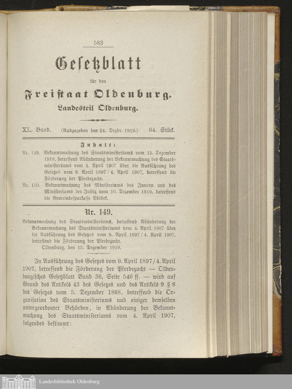 Gesetzblatt für den Freistaat Oldenburg, Landesteil Oldenburg