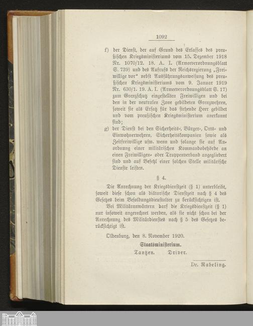 Gesetzblatt für den Freistaat Oldenburg, Landesteil Oldenburg