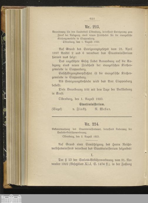 Gesetzblatt für den Freistaat Oldenburg, Landesteil Oldenburg