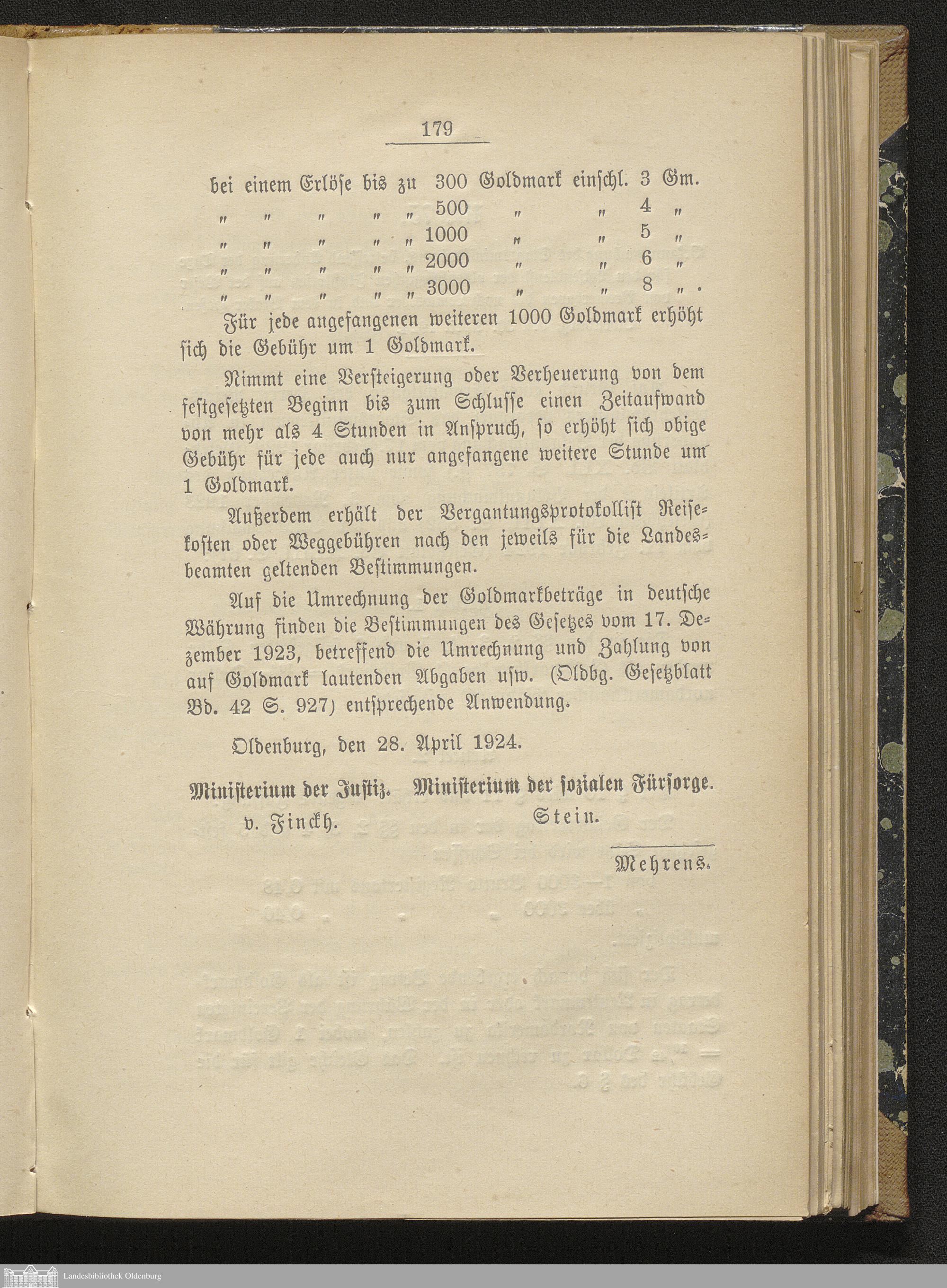 Gesetzblatt für den Freistaat Oldenburg, Landesteil Oldenburg