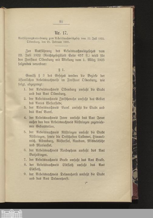 Gesetzblatt für den Freistaat Oldenburg, Landesteil Oldenburg