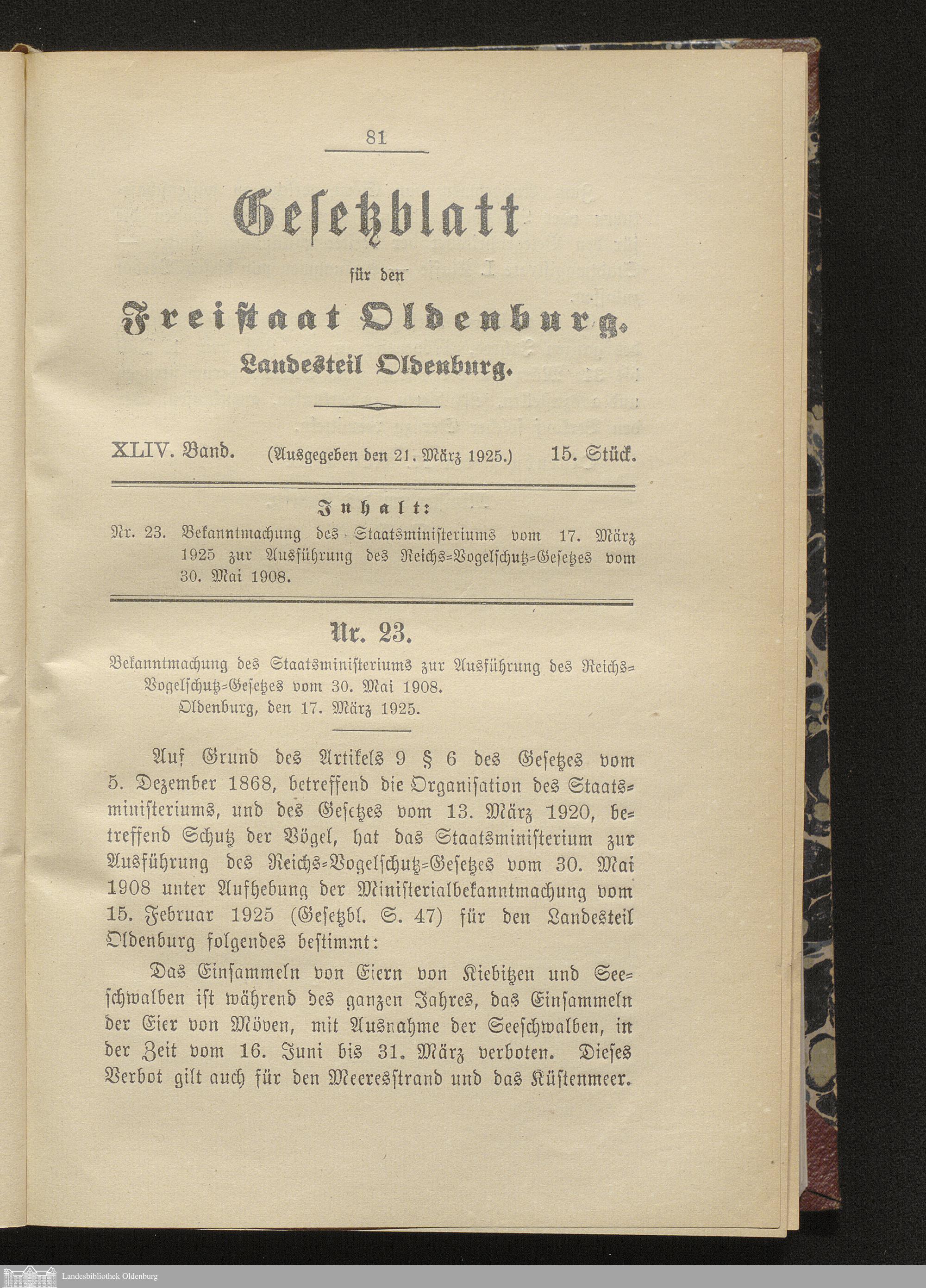 15. Stück, 21.03.1925