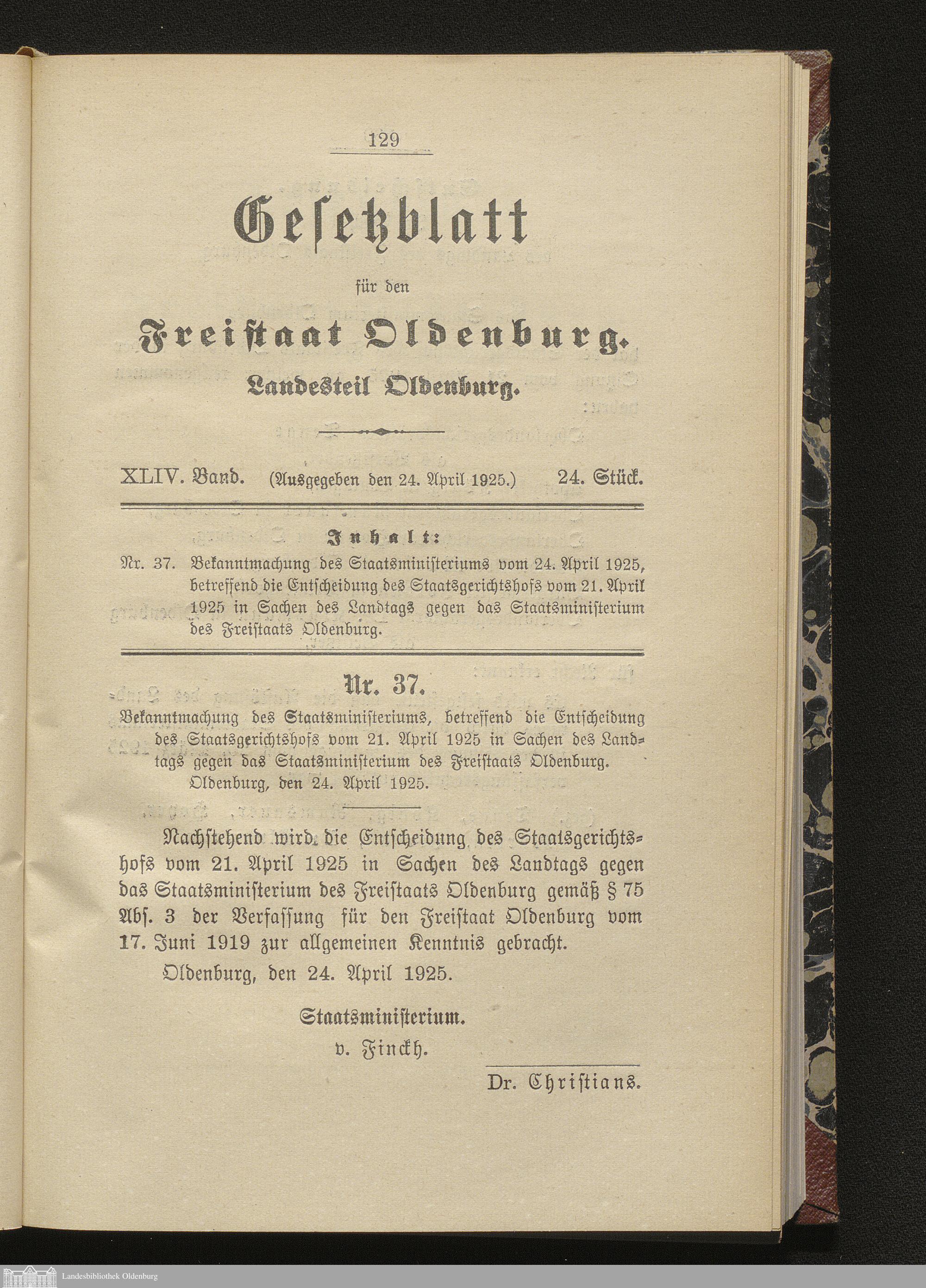 Gesetzblatt für den Freistaat Oldenburg, Landesteil Oldenburg