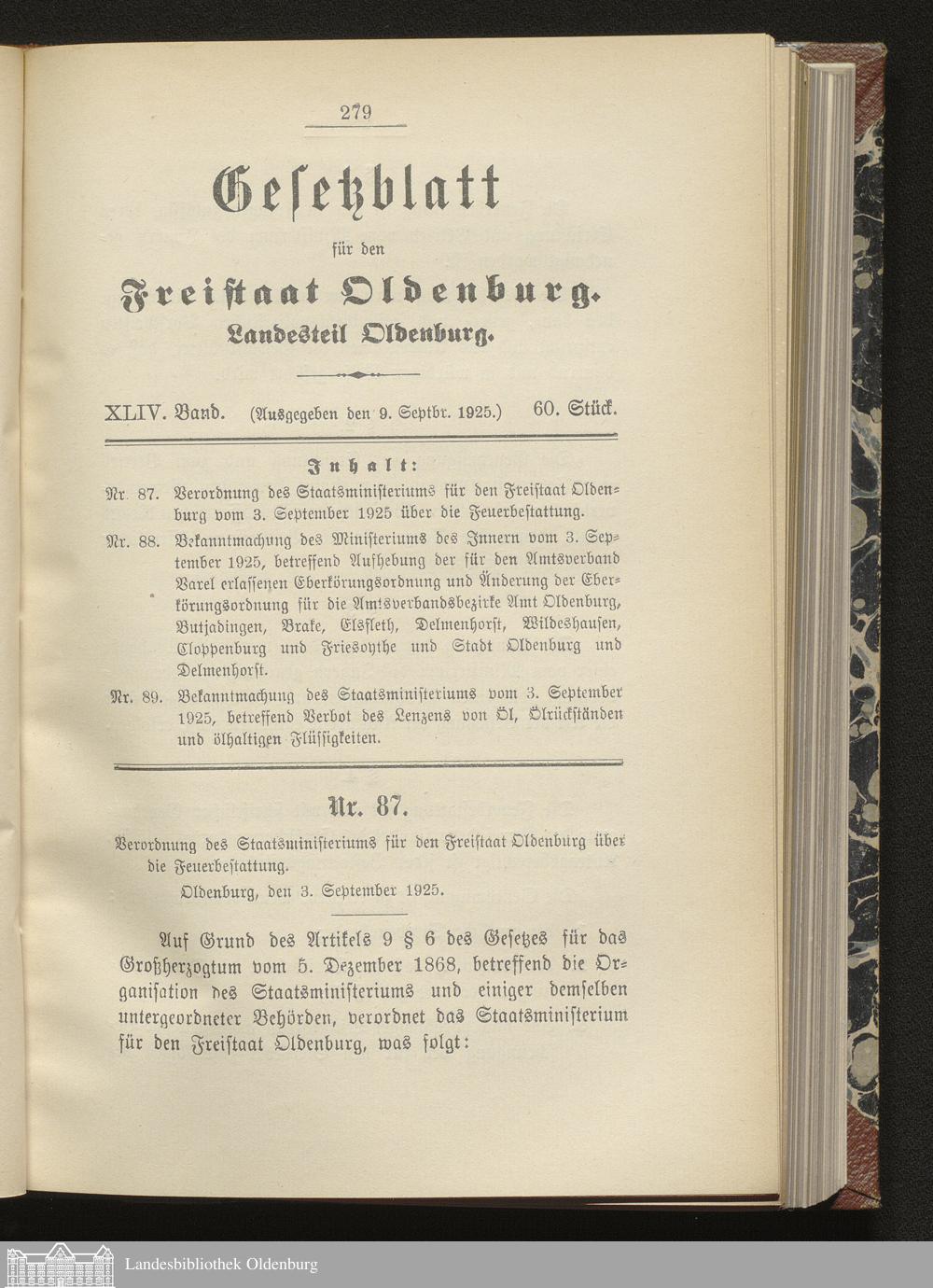 Gesetzblatt für den Freistaat Oldenburg, Landesteil Oldenburg