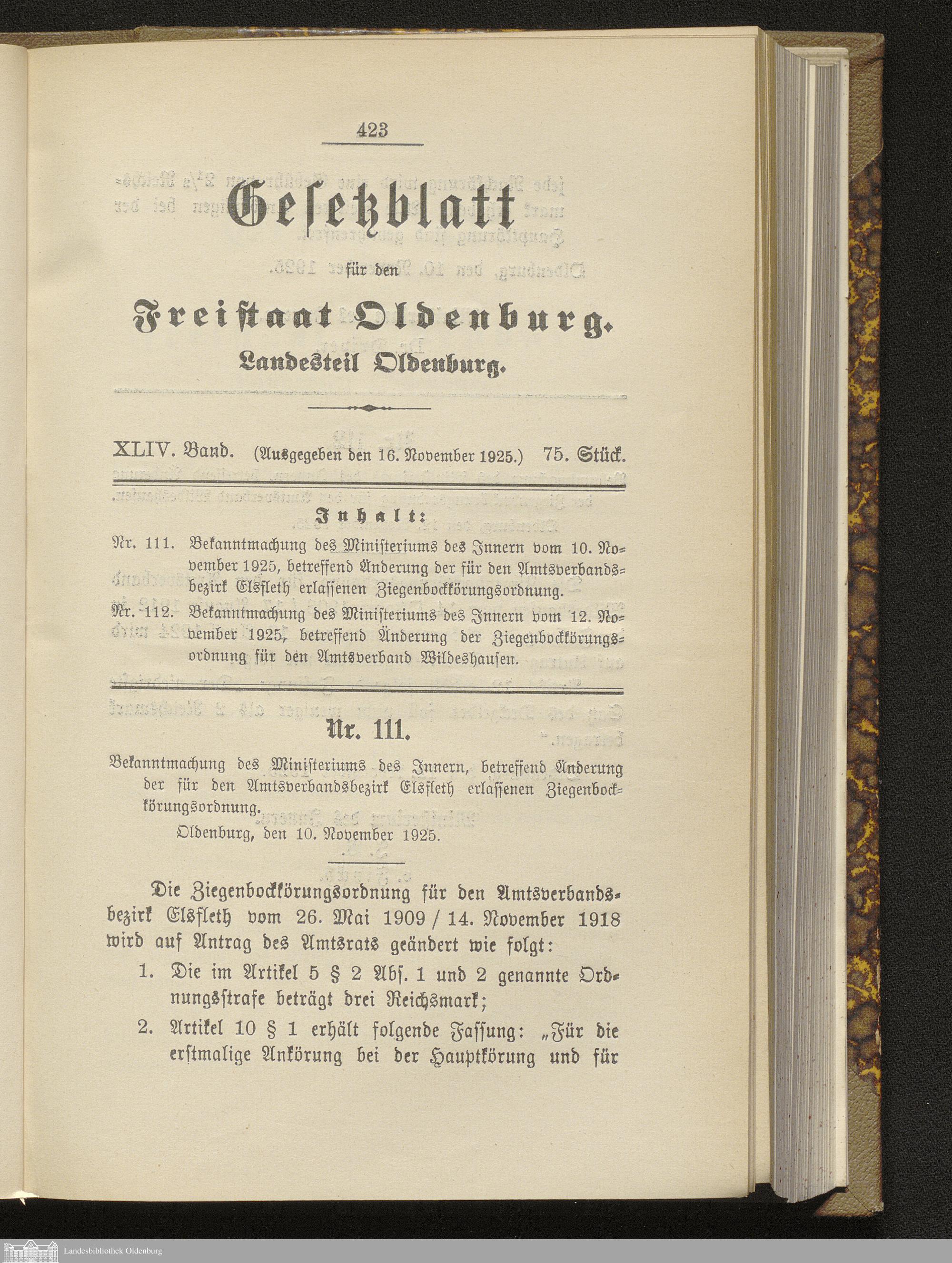 Gesetzblatt für den Freistaat Oldenburg, Landesteil Oldenburg