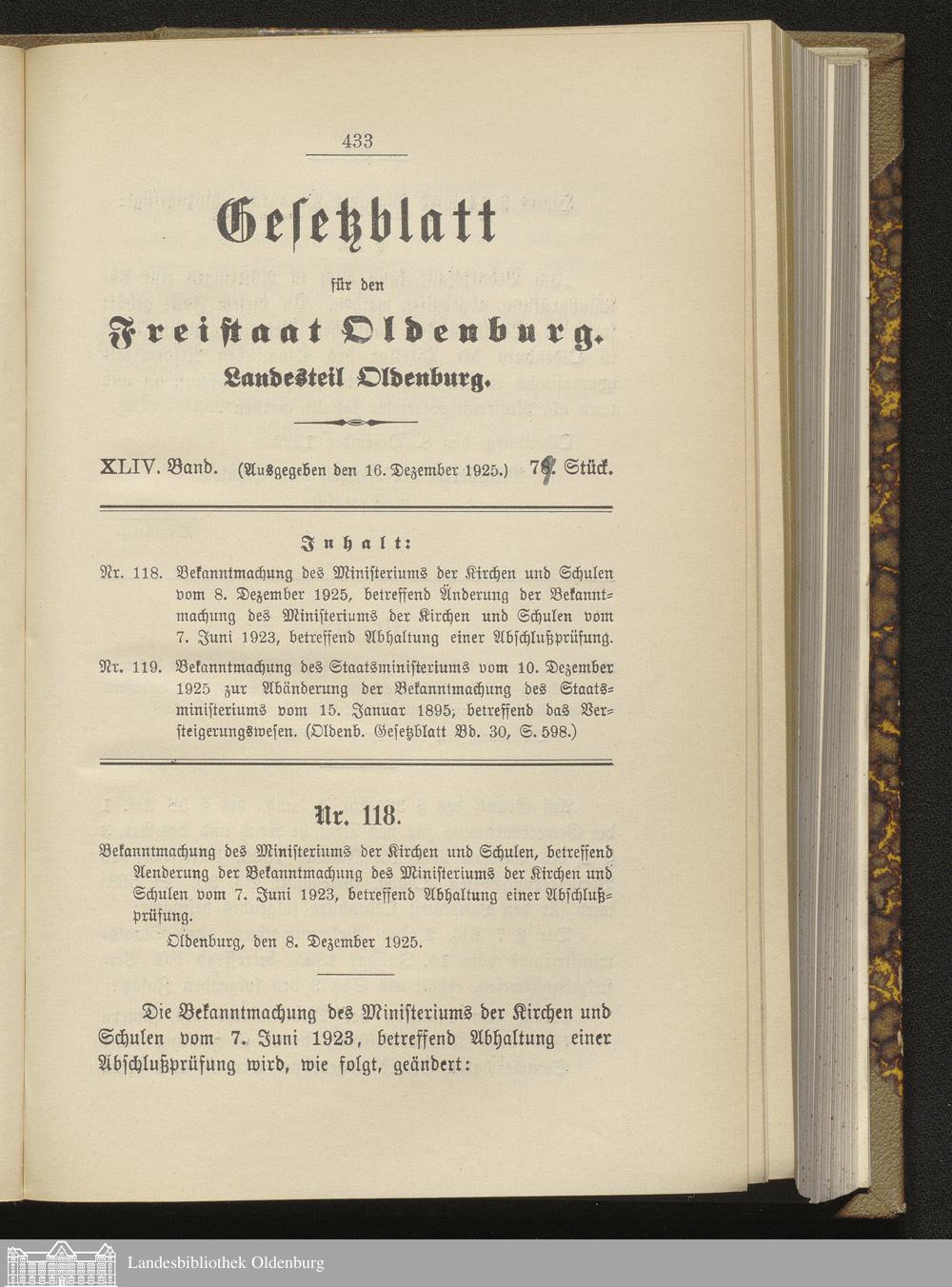 Gesetzblatt für den Freistaat Oldenburg, Landesteil Oldenburg