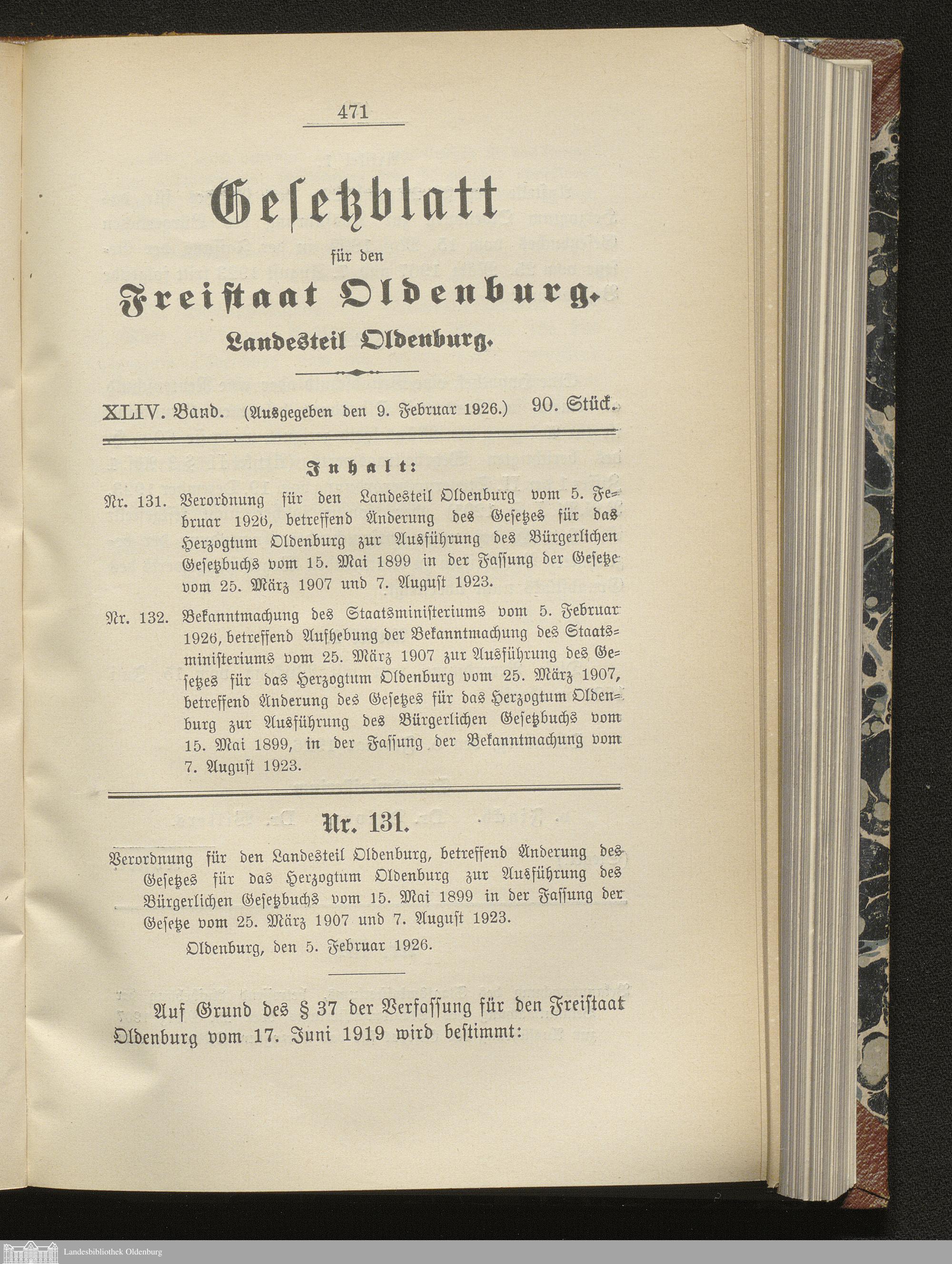 Gesetzblatt für den Freistaat Oldenburg, Landesteil Oldenburg