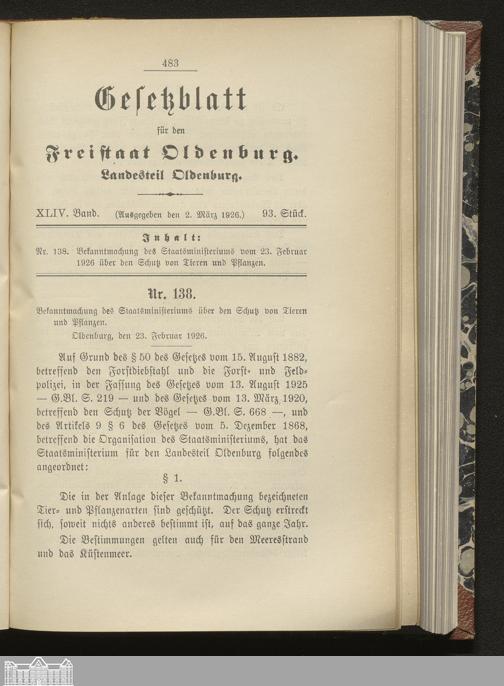 Gesetzblatt für den Freistaat Oldenburg, Landesteil Oldenburg