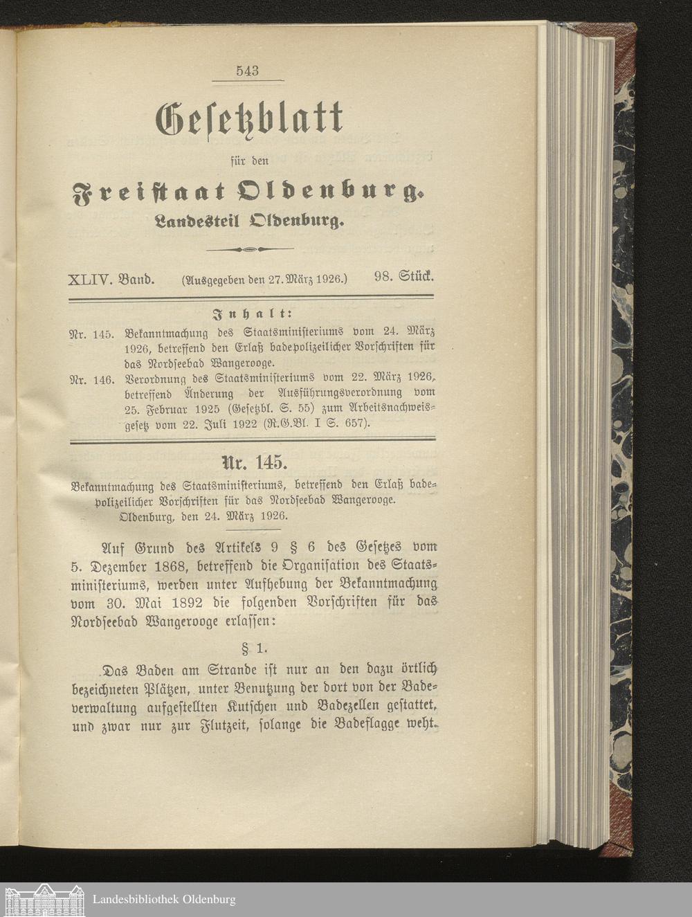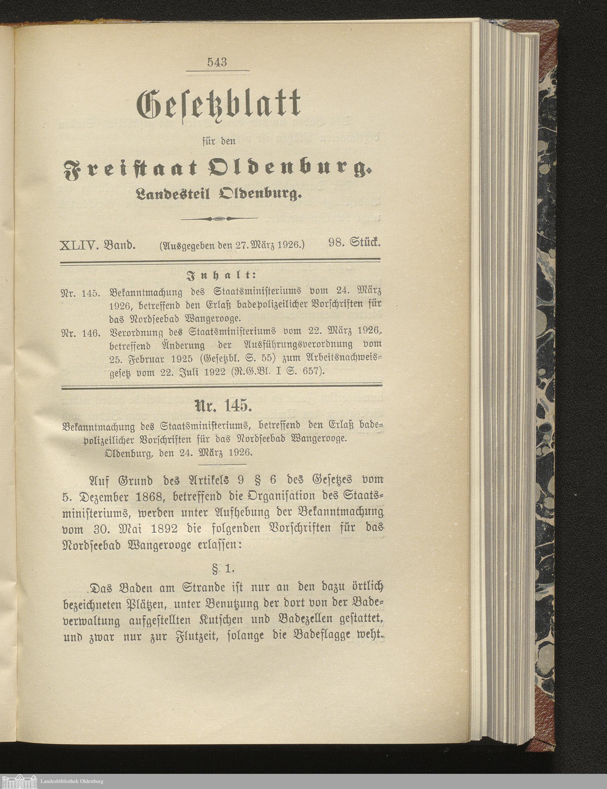 Gesetzblatt für den Freistaat Oldenburg, Landesteil Oldenburg