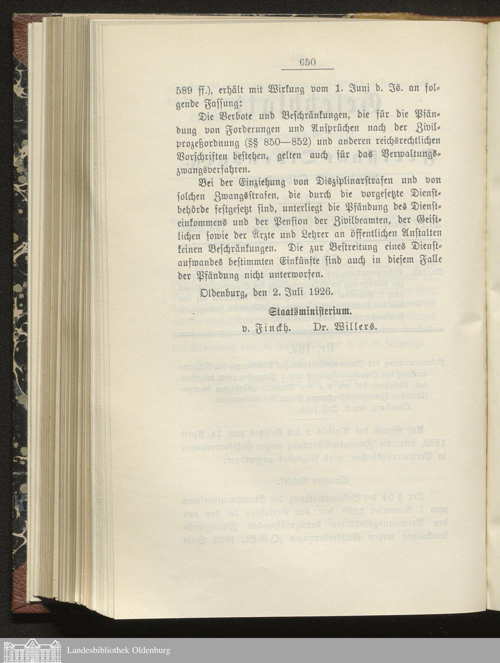 Gesetzblatt für den Freistaat Oldenburg, Landesteil Oldenburg