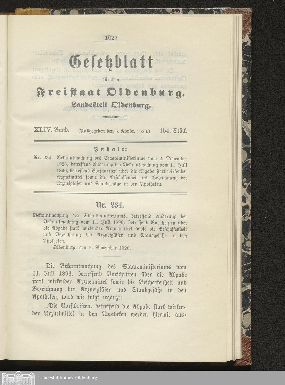154. Stück, 05.11.1926