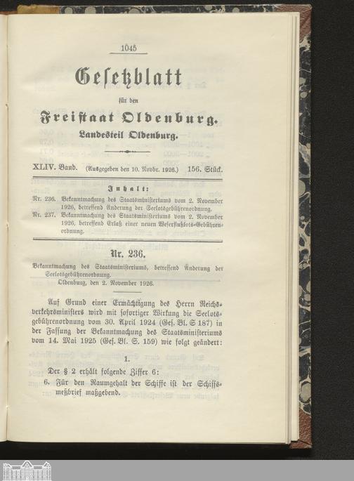Gesetzblatt für den Freistaat Oldenburg, Landesteil Oldenburg