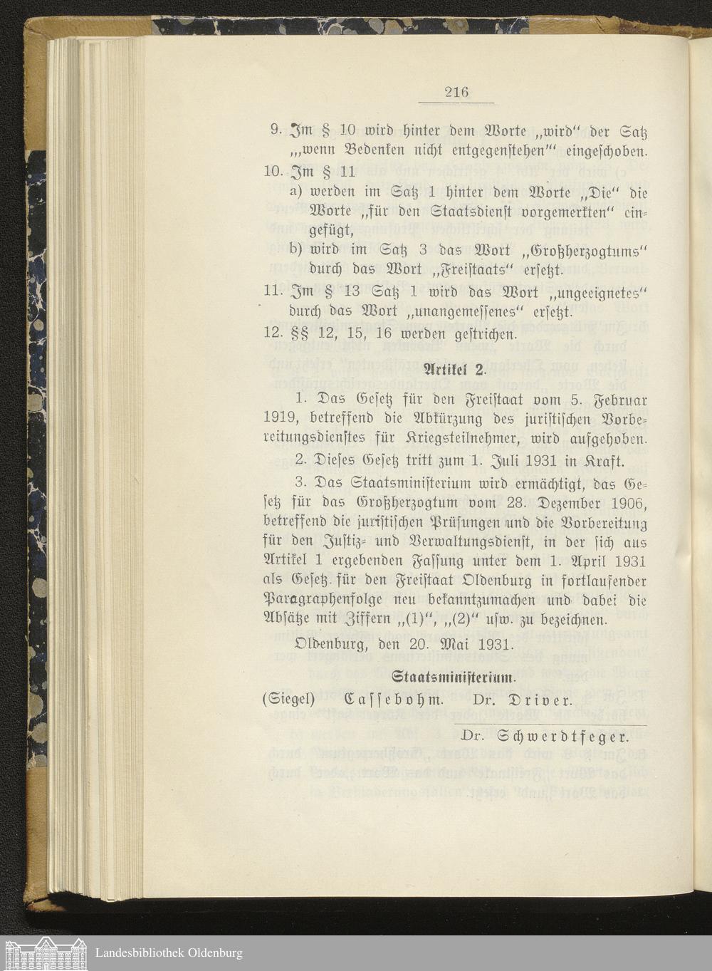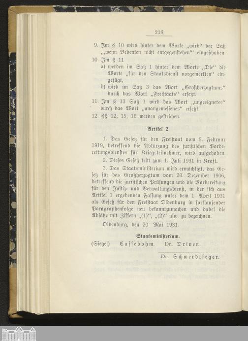 Gesetzblatt für den Freistaat Oldenburg, Landesteil Oldenburg