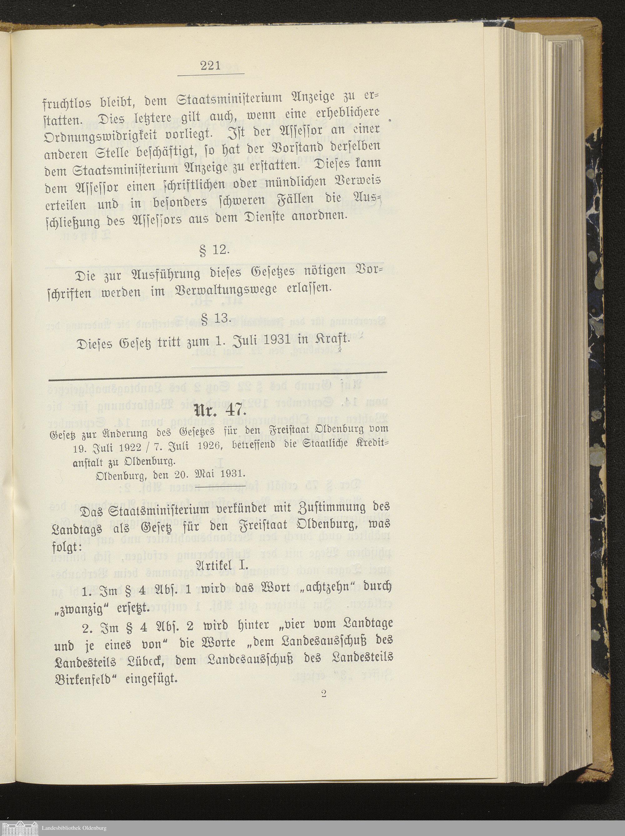 Gesetzblatt für den Freistaat Oldenburg, Landesteil Oldenburg