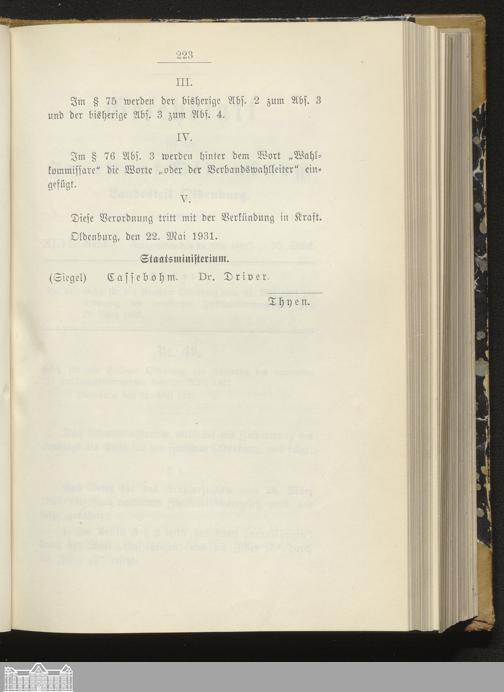 Gesetzblatt für den Freistaat Oldenburg, Landesteil Oldenburg