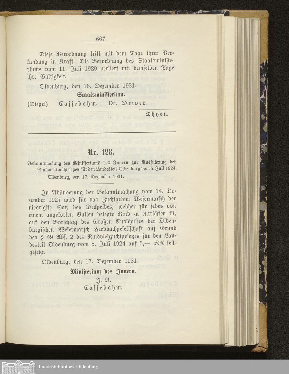 Gesetzblatt für den Freistaat Oldenburg, Landesteil Oldenburg