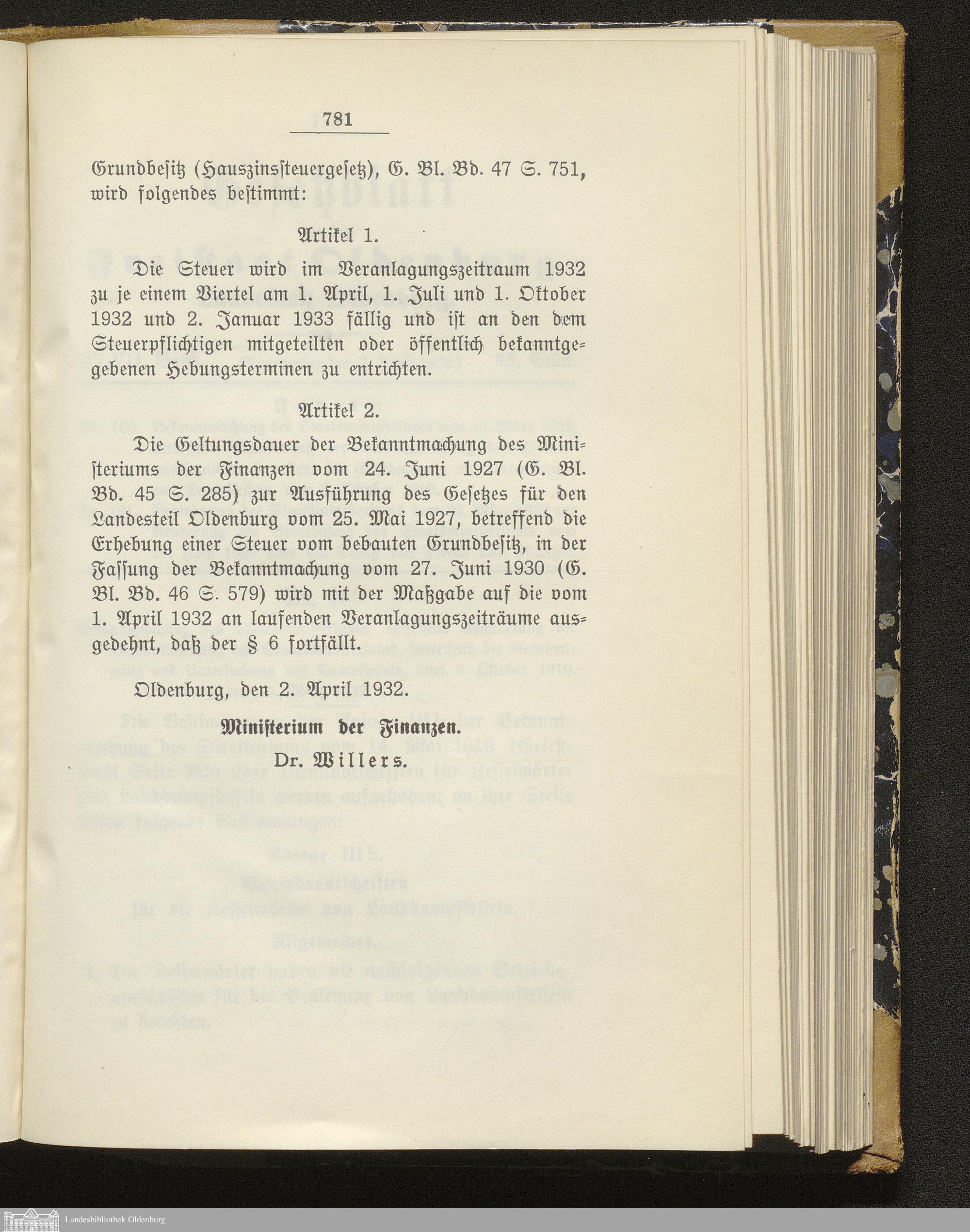 Gesetzblatt für den Freistaat Oldenburg, Landesteil Oldenburg
