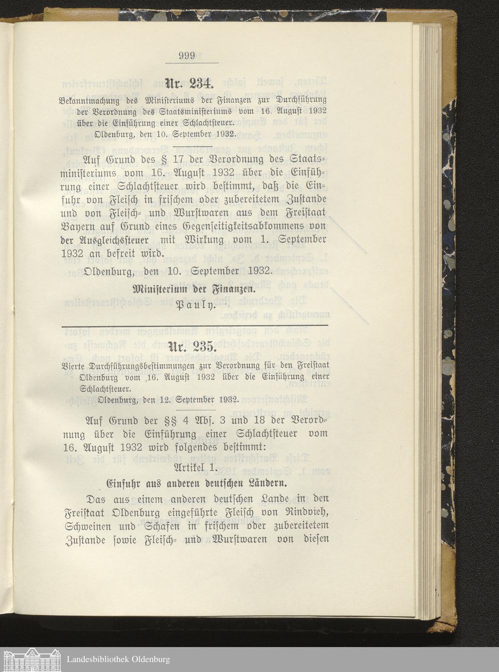 Gesetzblatt für den Freistaat Oldenburg, Landesteil Oldenburg