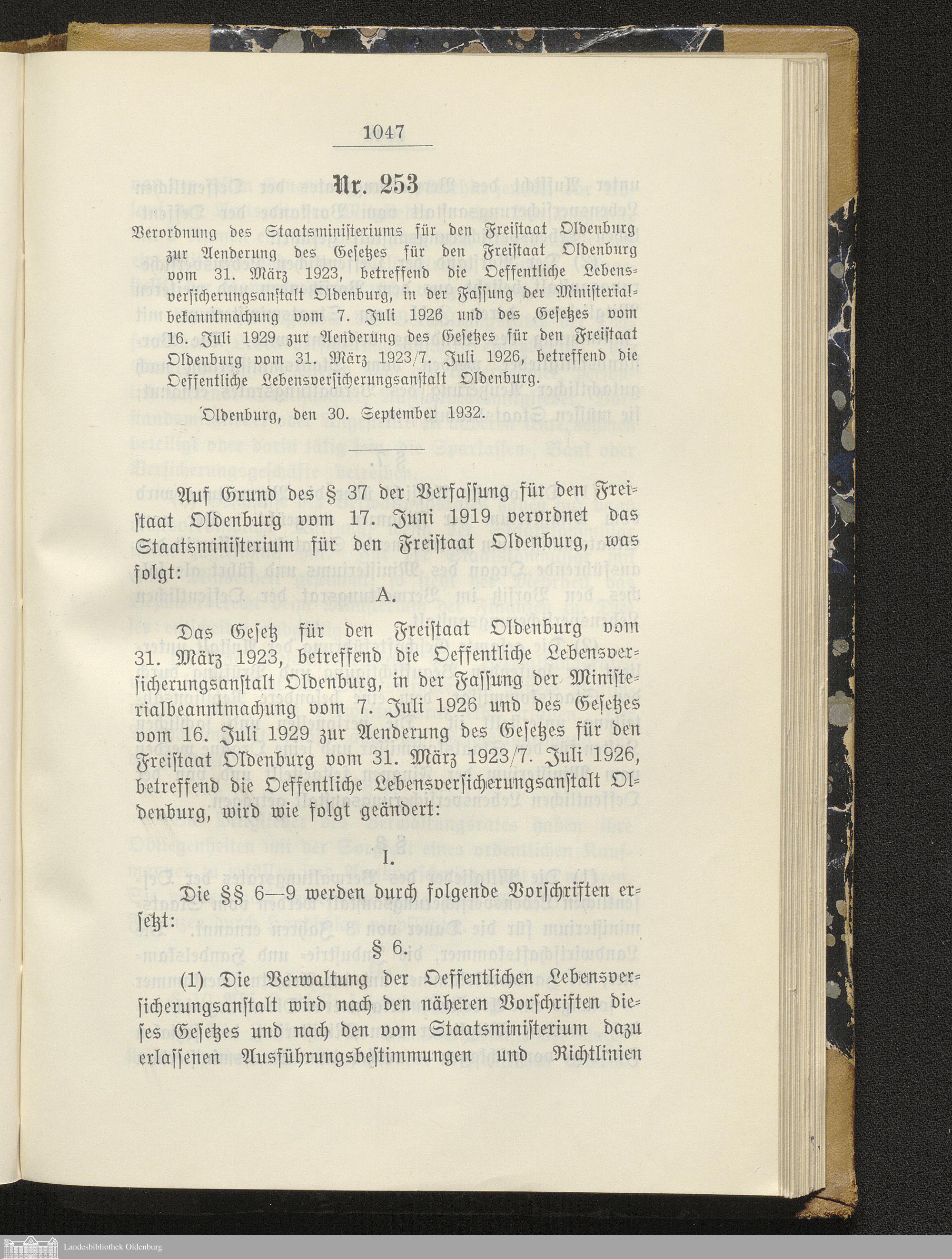 Gesetzblatt für den Freistaat Oldenburg, Landesteil Oldenburg