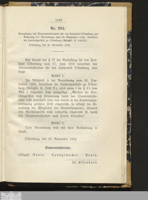 Gesetzblatt für den Freistaat Oldenburg, Landesteil Oldenburg