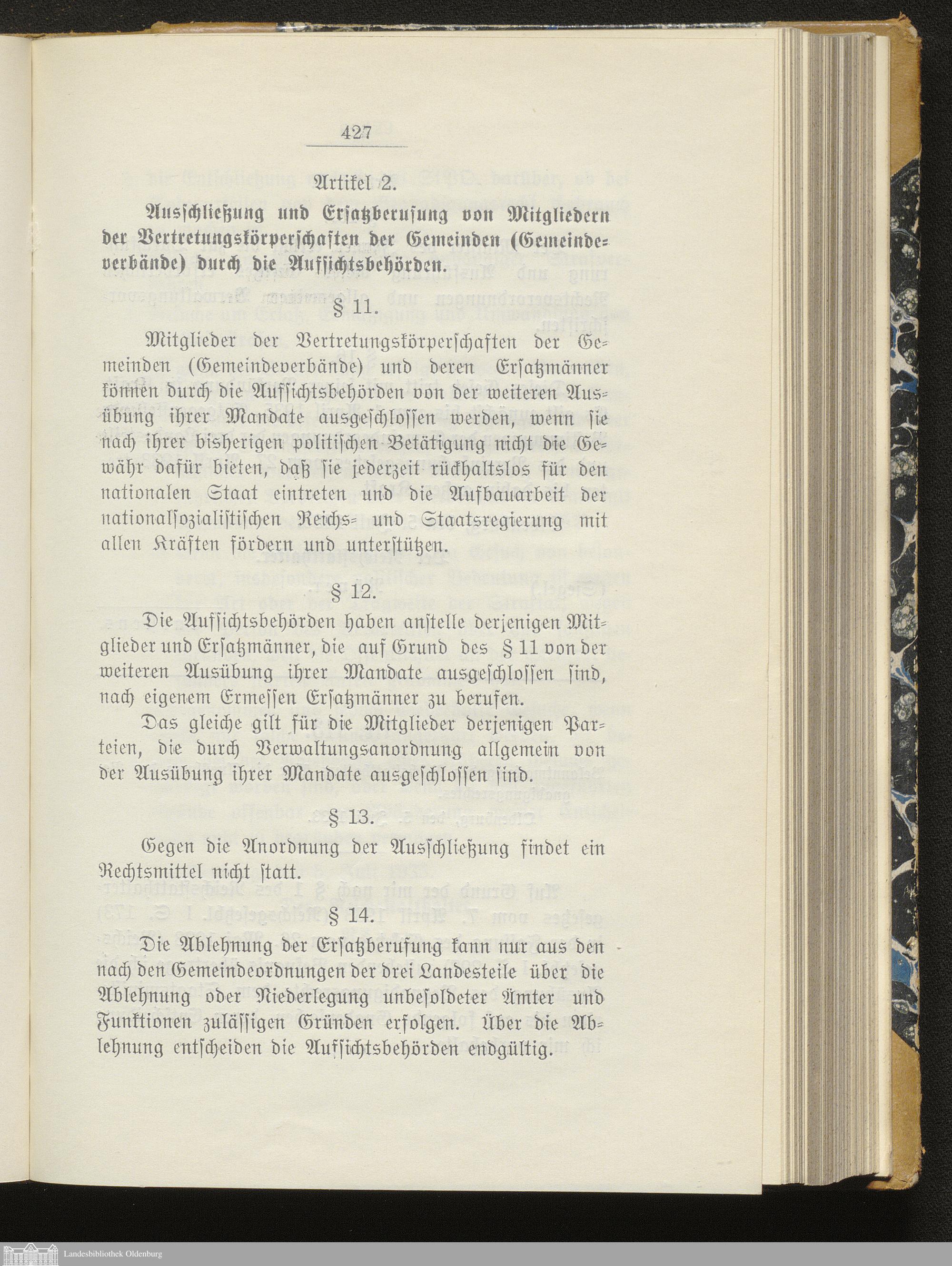 Gesetzblatt für den Freistaat Oldenburg, Landesteil Oldenburg