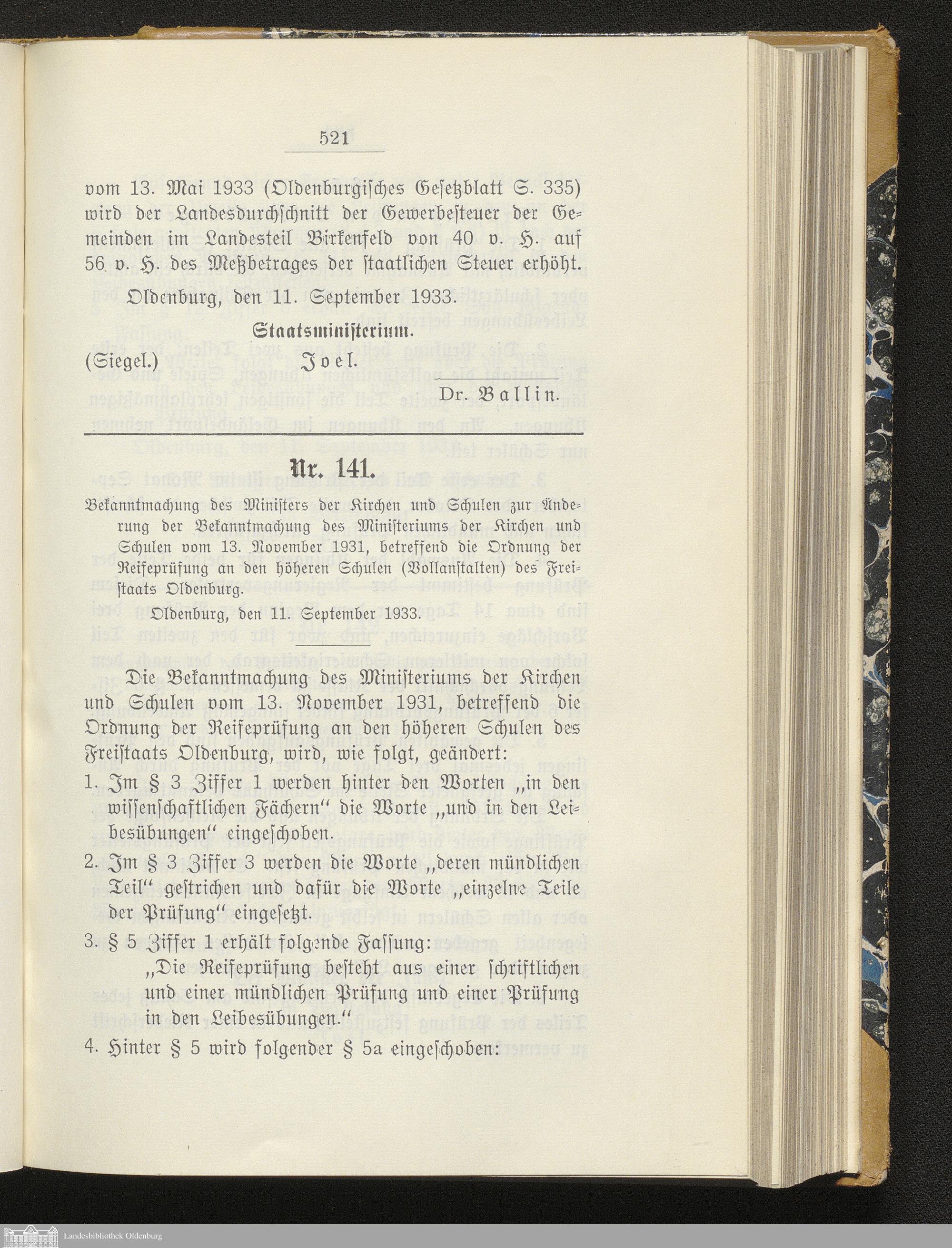 Gesetzblatt für den Freistaat Oldenburg, Landesteil Oldenburg