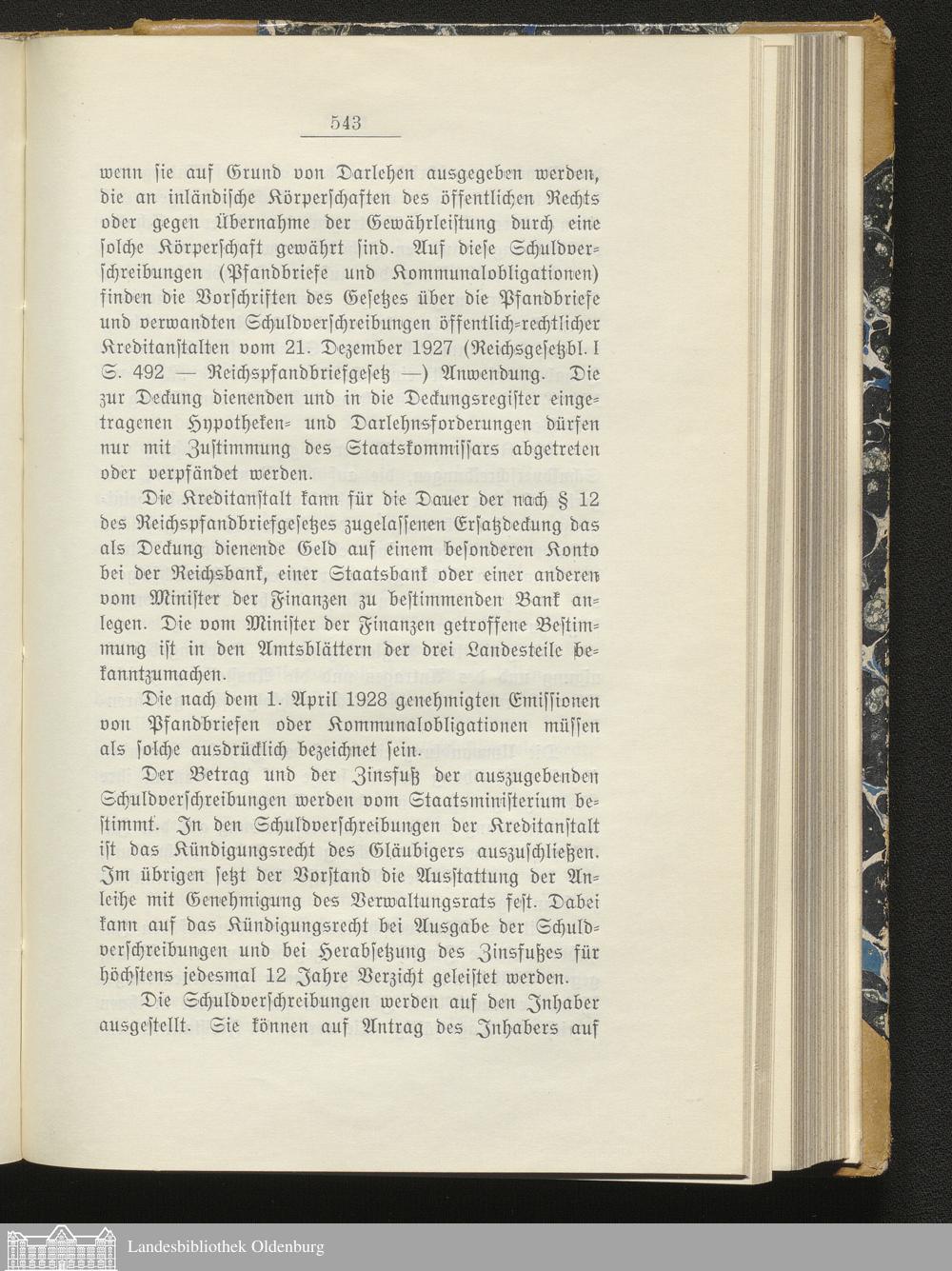 Gesetzblatt für den Freistaat Oldenburg, Landesteil Oldenburg