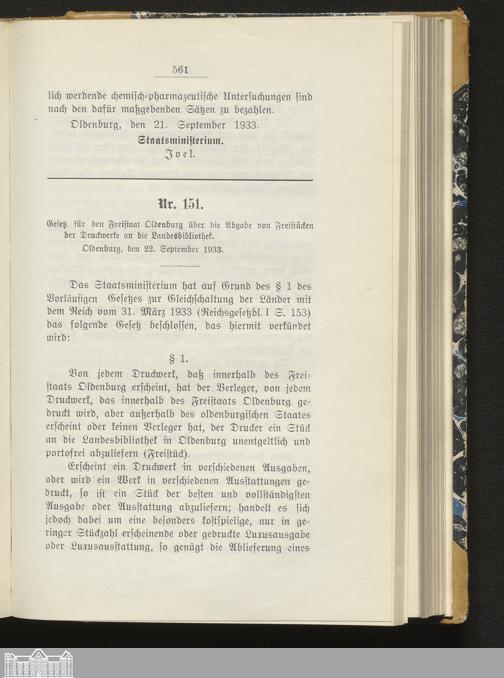 Gesetzblatt für den Freistaat Oldenburg, Landesteil Oldenburg