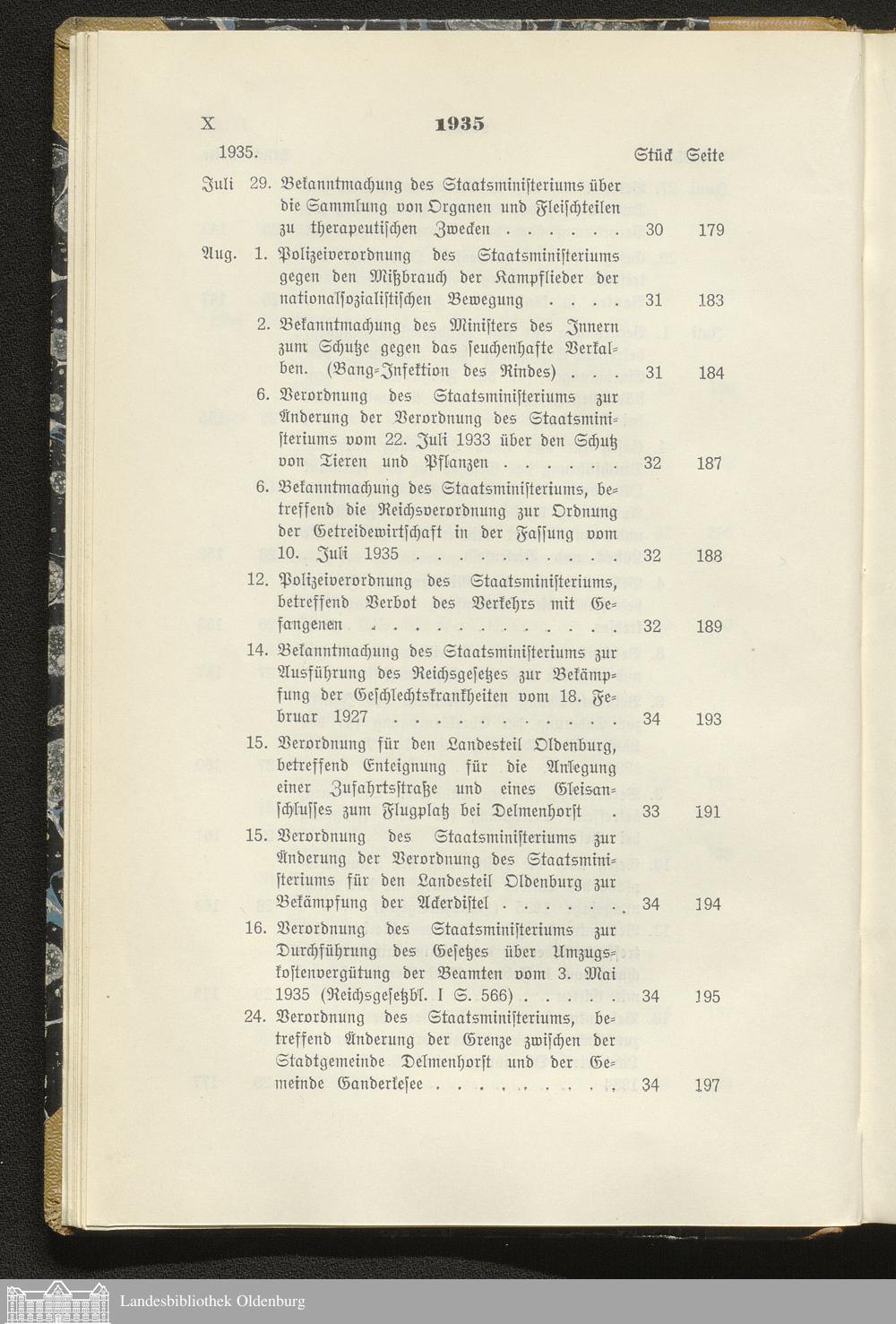 Gesetzblatt für den Freistaat Oldenburg, Landesteil Oldenburg