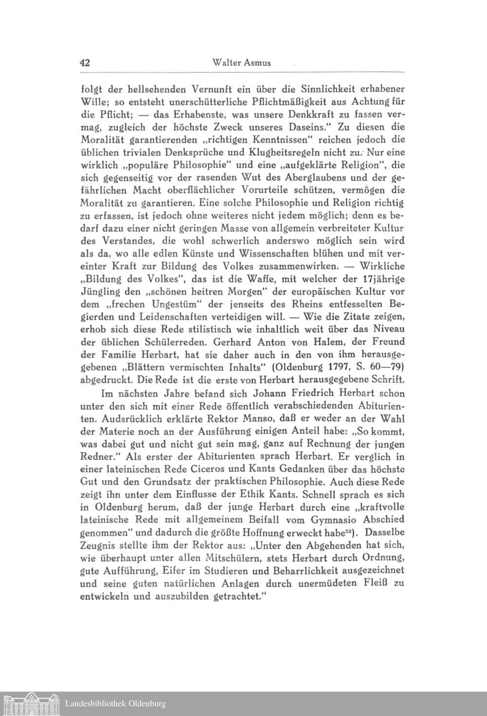 Die Herbarts in Oldenburg. Von Walter Asmus