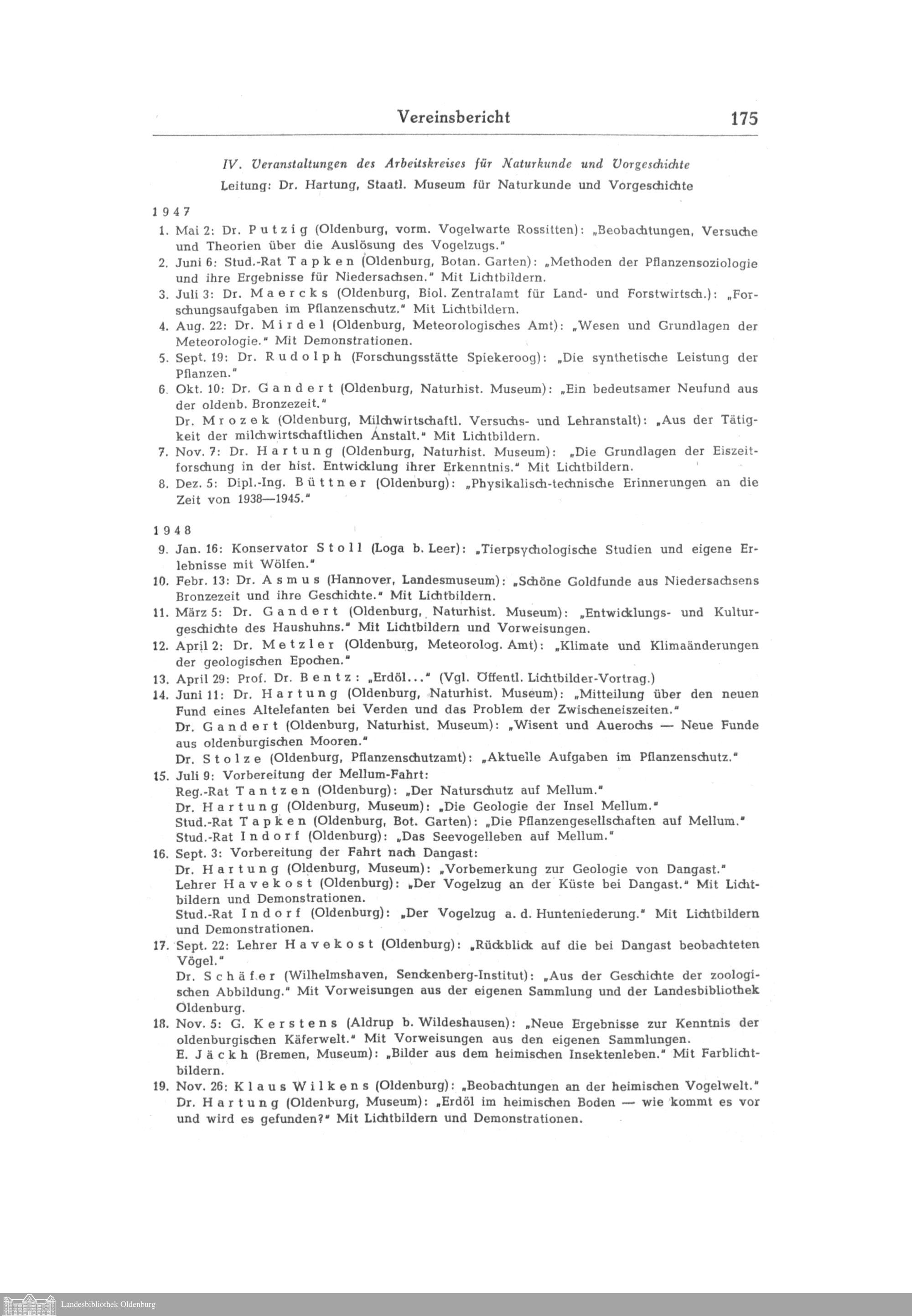 Oldenburger Landesverein für Geschichte, Natur- und Heimatkunde. Vereinsbericht 1942 – 1949