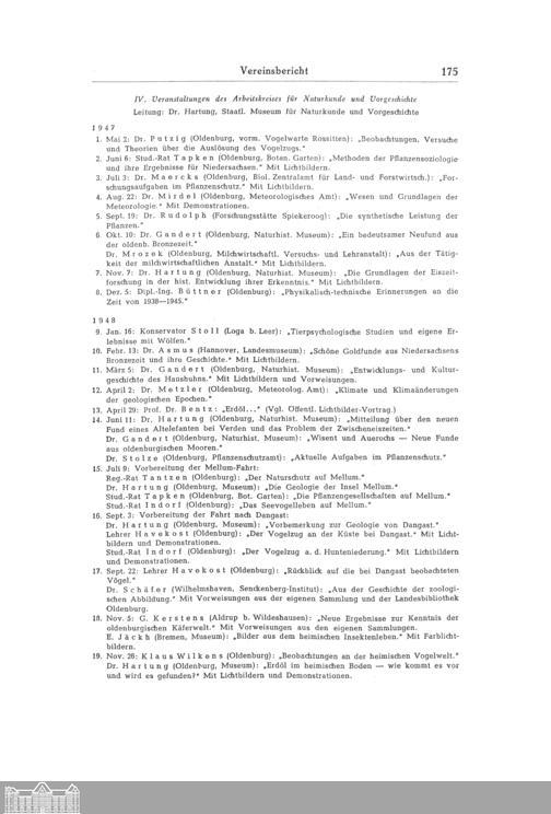 Oldenburger Landesverein für Geschichte, Natur- und Heimatkunde. Vereinsbericht 1942...
