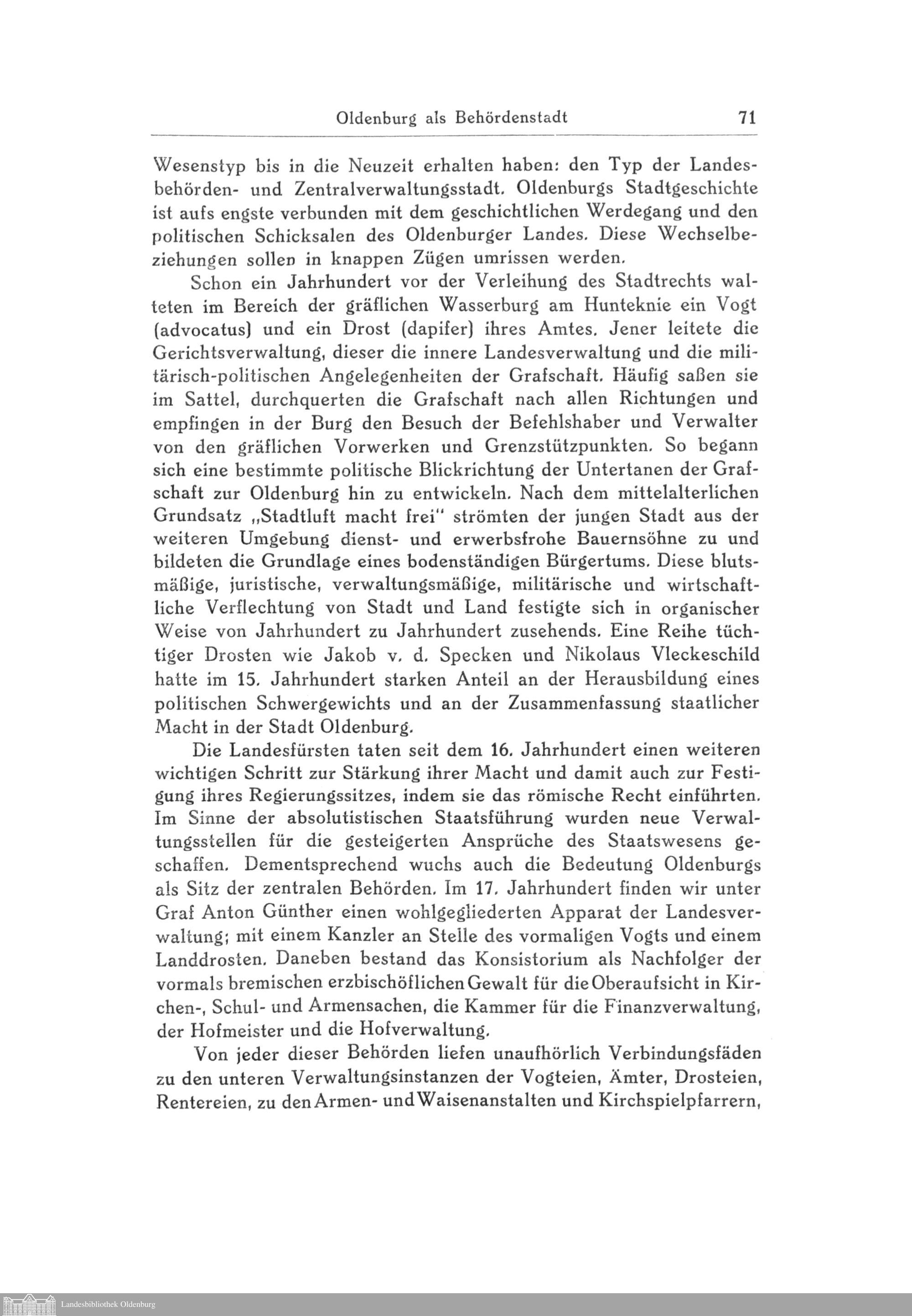 Abriß der Oldenburger Stadtgeschichte. Von Dietrich Kohl