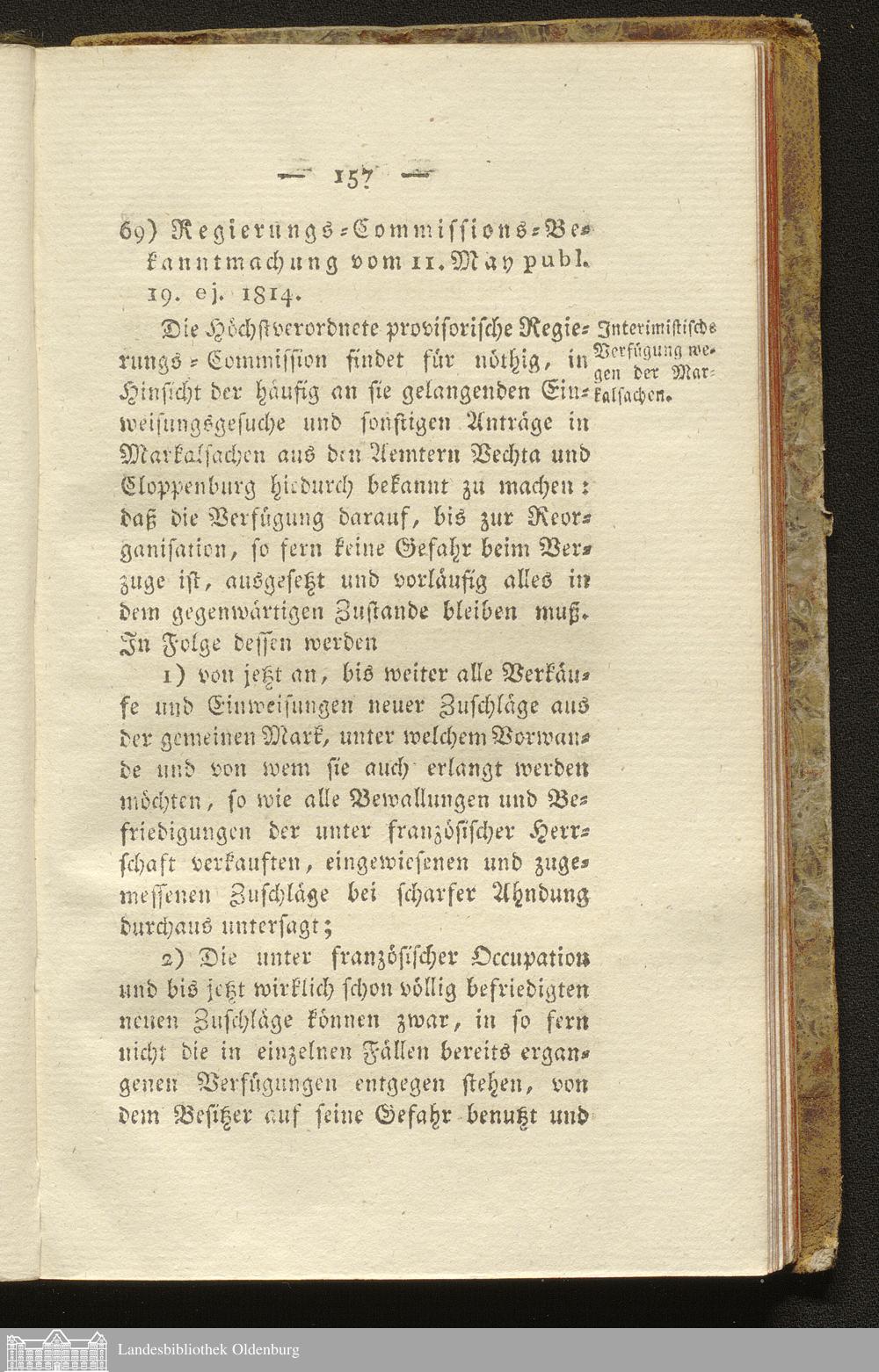 69. Verordnung vom 11.05.1814 publ. 19.05.1814