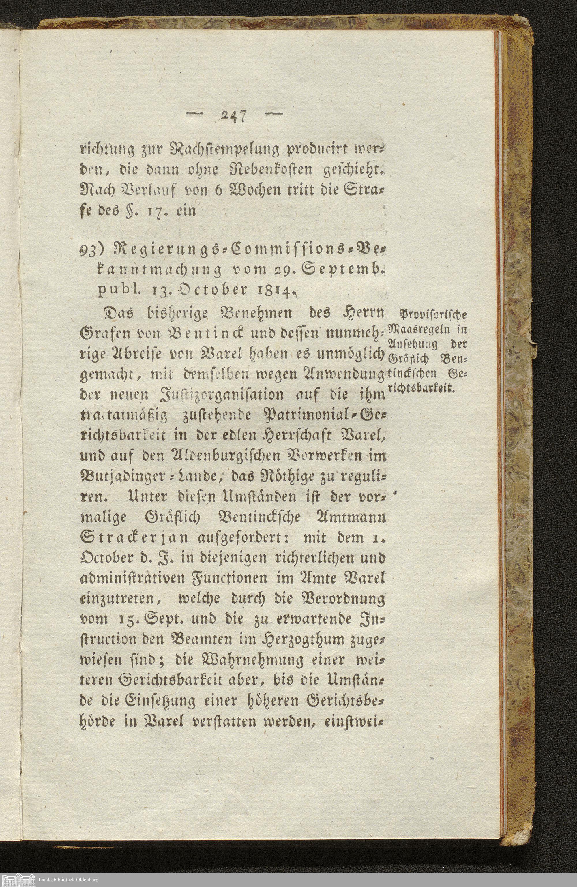93. Verordnung vom 29.09.1814 publ. 13.10.1814