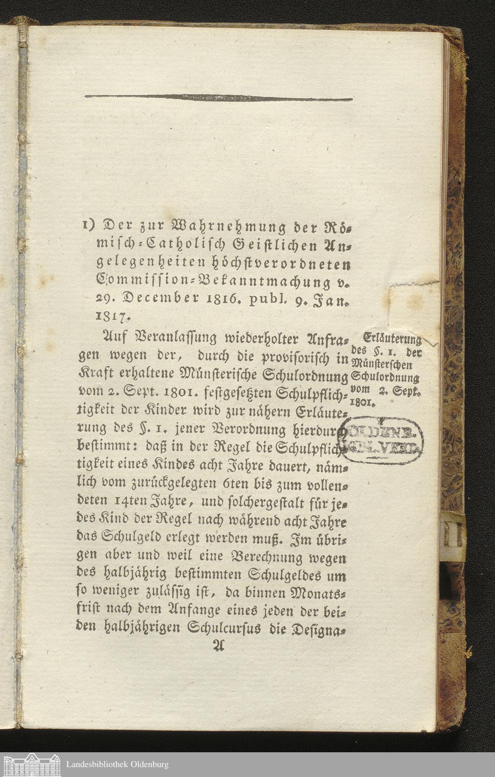 1. Verordnung vom 29.12.1816 publ. 09.01.1817