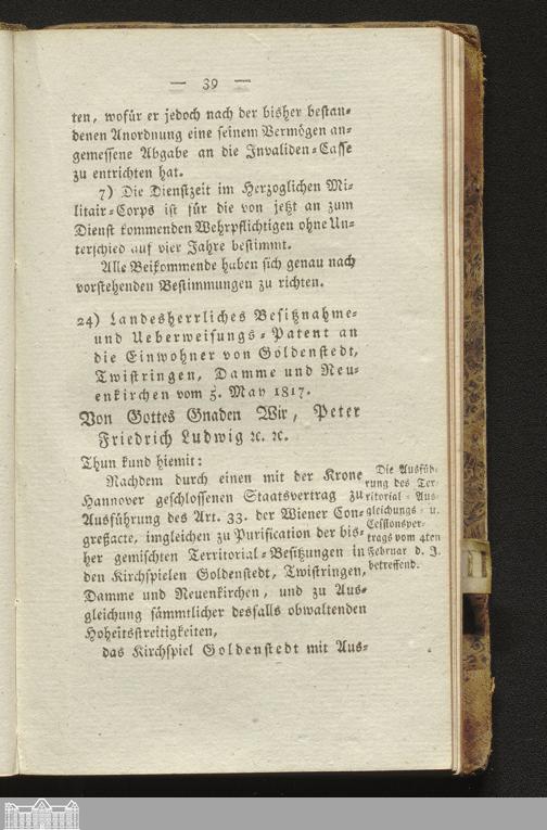 24. Verordnung vom 05.05.1817