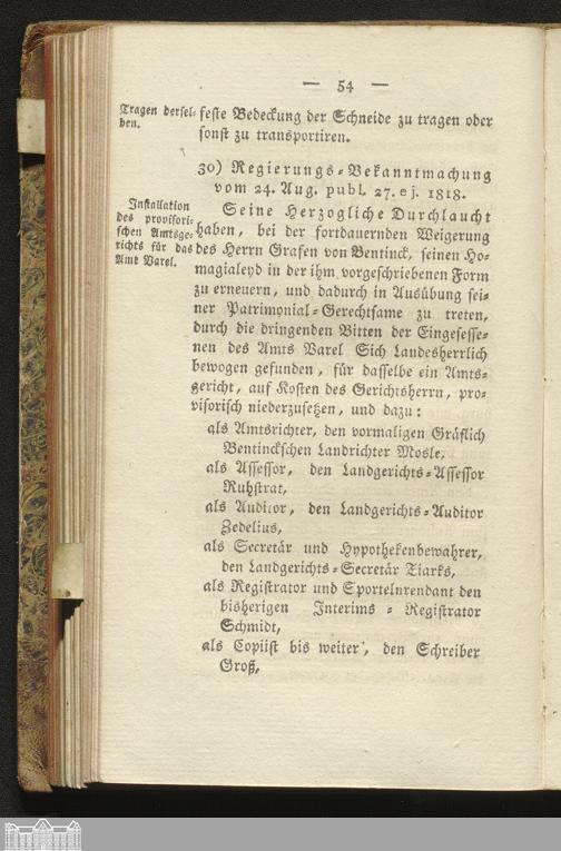 30. Verordnung vom 24.08.1818 publ. 27.08.1818