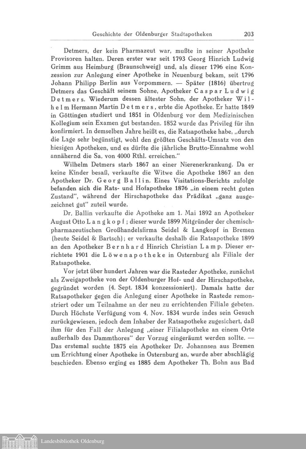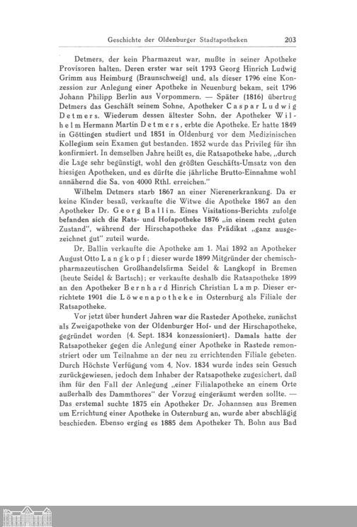 Geschichte der Oldenburger Stadtapotheken. Mit 3 Stammtafeln im Text. Von Wolfgang...