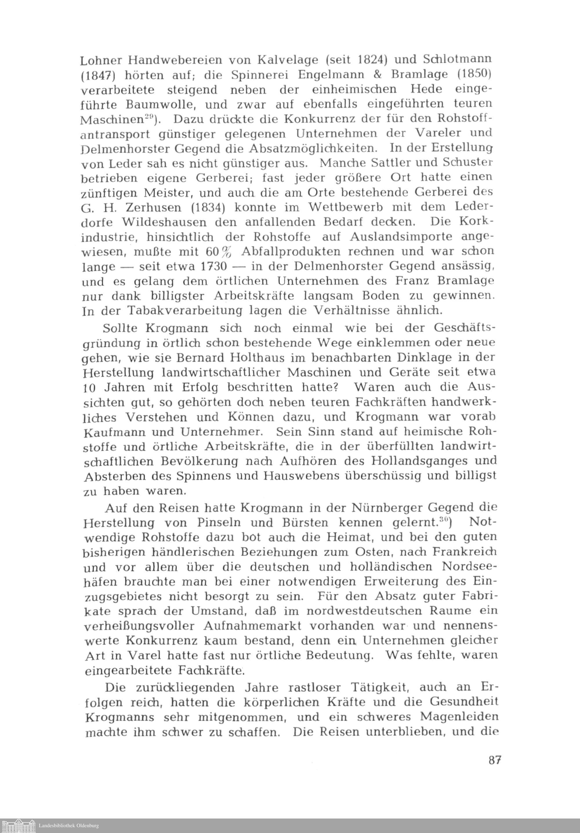 Gebr. Krogmann & Co., Lohne (Oldb). Ein Beitrag zur Geschichte der Lohner Industrie und ihrer Wandlungen von Johannes Ostendorf [Mit Abb.: Johann Heinrich Krogmann, Franz Bramlage, Anton Hoyng. Richard Krogmann, Heinrich Holtvogt, Eberhard Kotthoff]