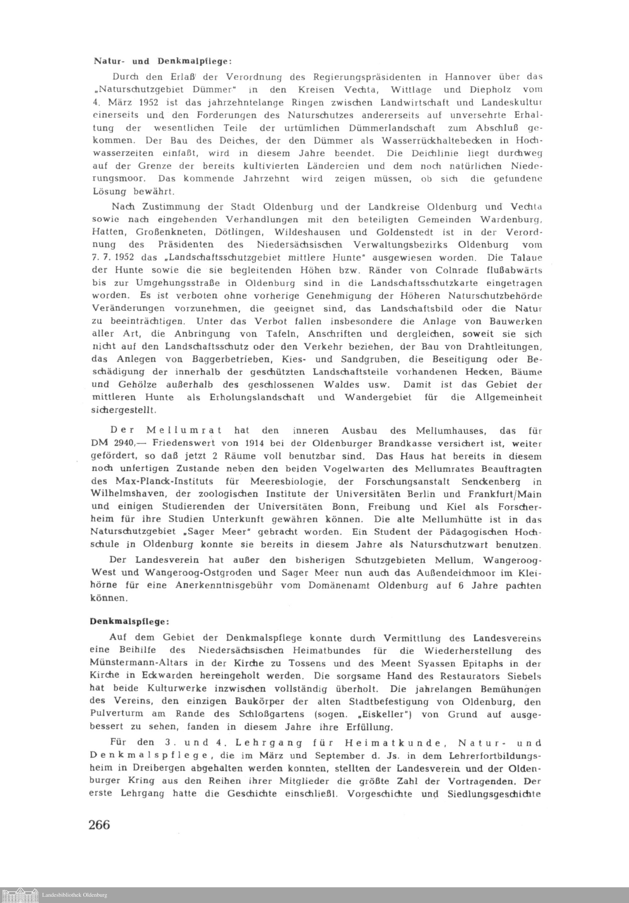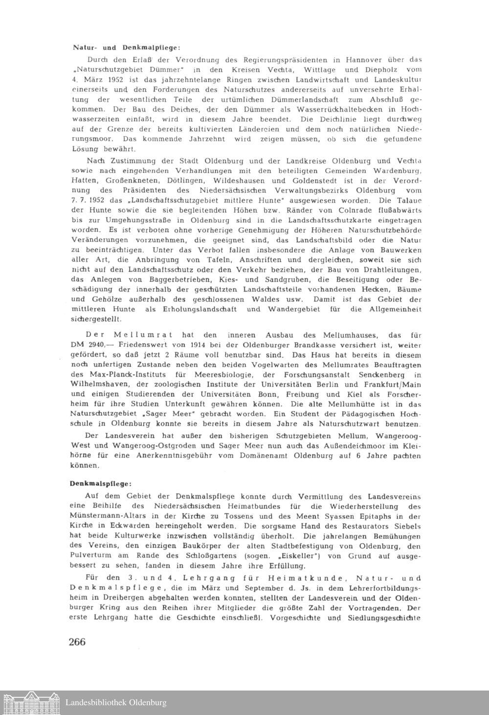 Oldenburger Landesverein für Geschichte, Natur- und Heimatkunde. Vereinsbericht 1951-52