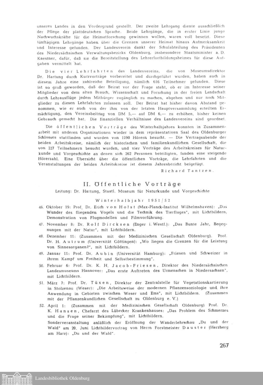 Oldenburger Landesverein für Geschichte, Natur- und Heimatkunde. Vereinsbericht 1951-52
