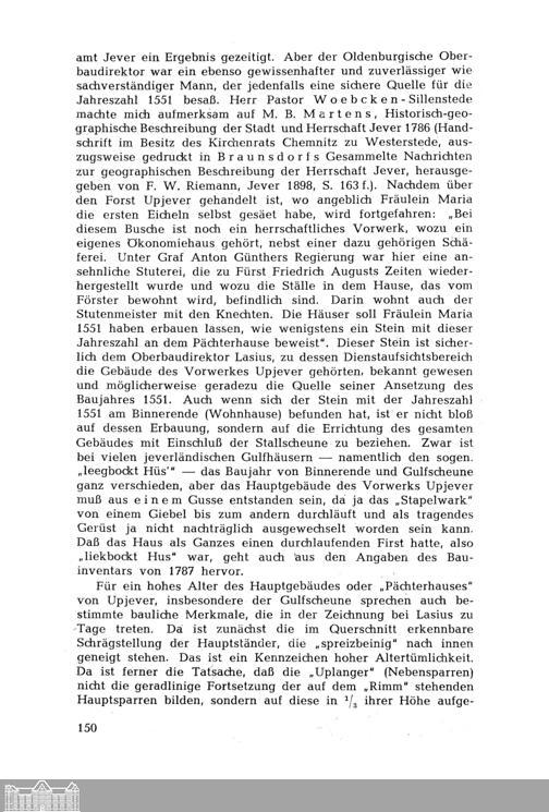 Johann Ulrich Folkers: Das Vorwerk Upjever. Seine Bedeutung für die Entwicklungsgeschichte des friesischen Bauernhauses. Mit 2 Abbildungen