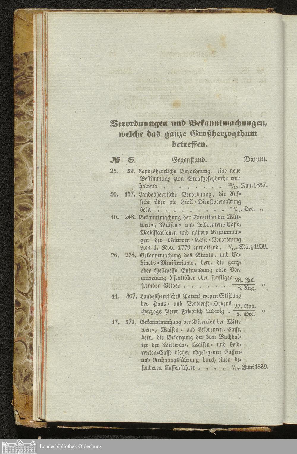 Verzeichniß aller im neunten Bande der Oldenburgischen Gesetzsammlung befindlichen...
