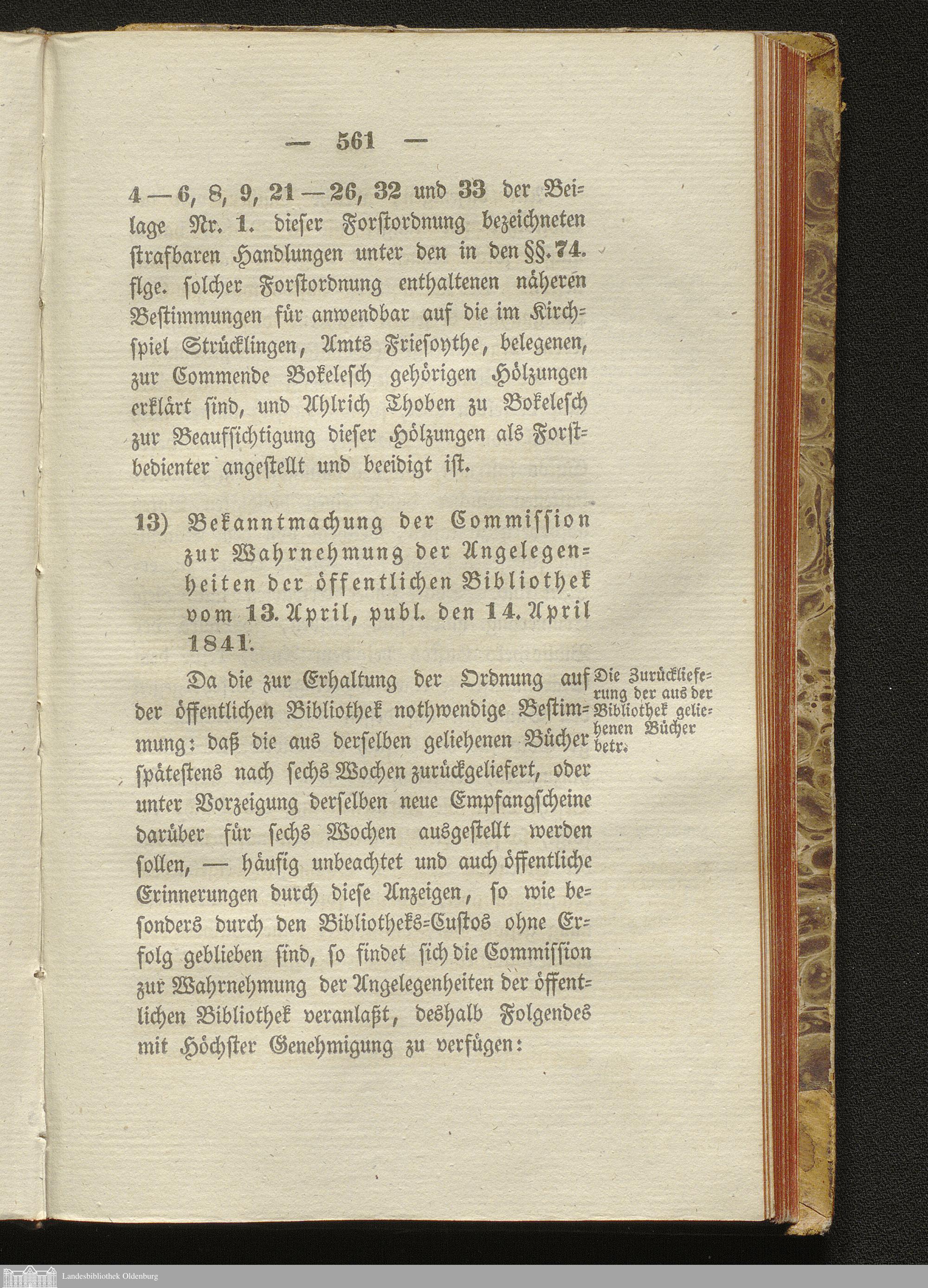 13. Verordnung vom 13.04.1841 publ. 14.04.1841