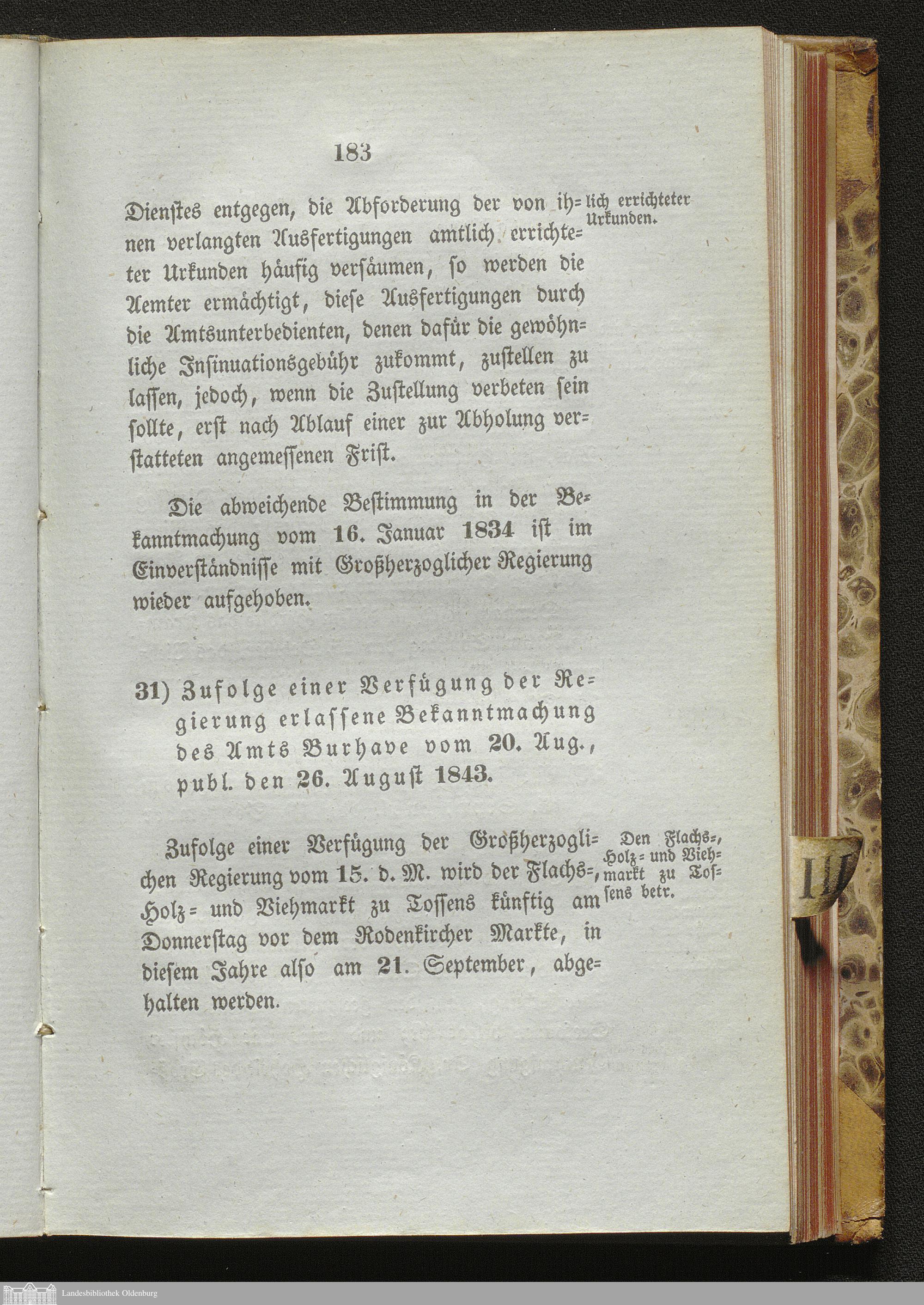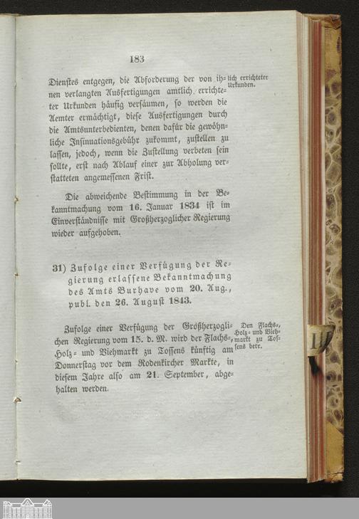31. Verordnung vom 20.08.1843 publ. 26.08.1843