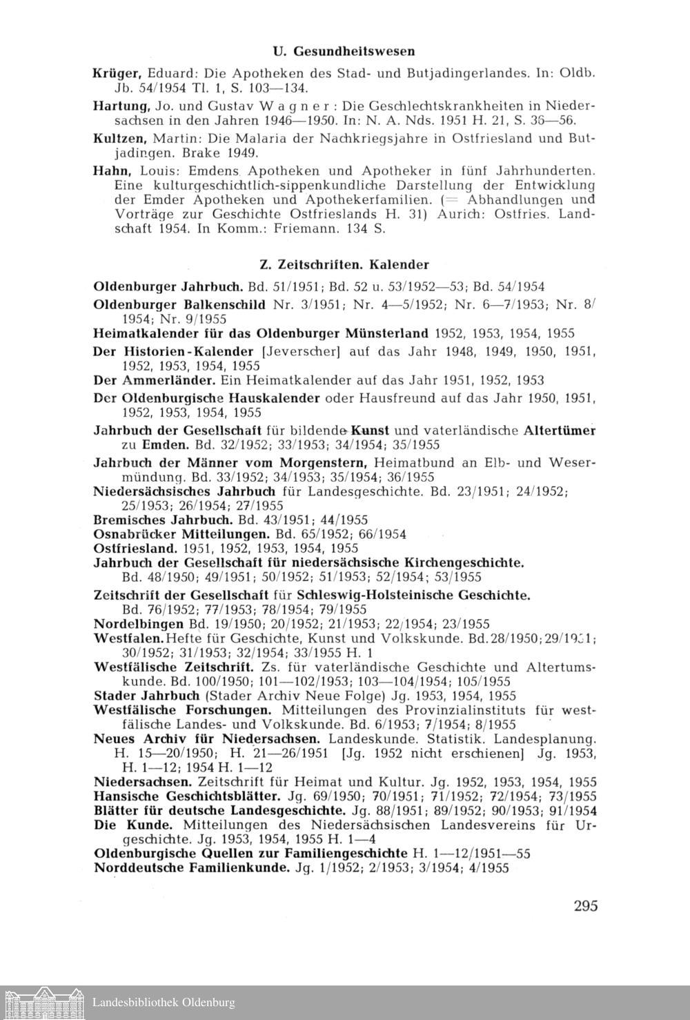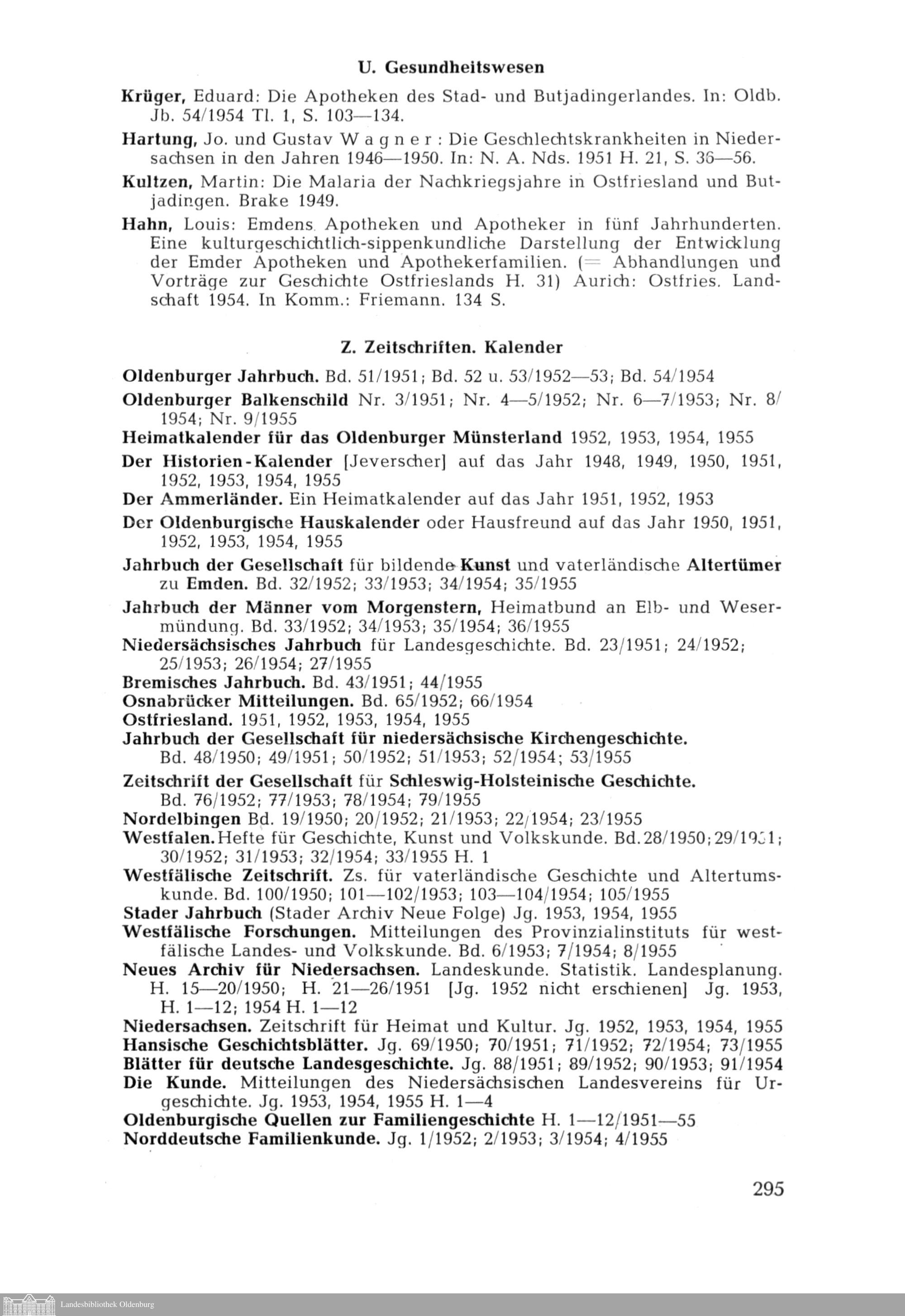 Hermann Lübbing: Neues Schrifttum zur Geschichte und Landeskunde Oldenburgs 1950...